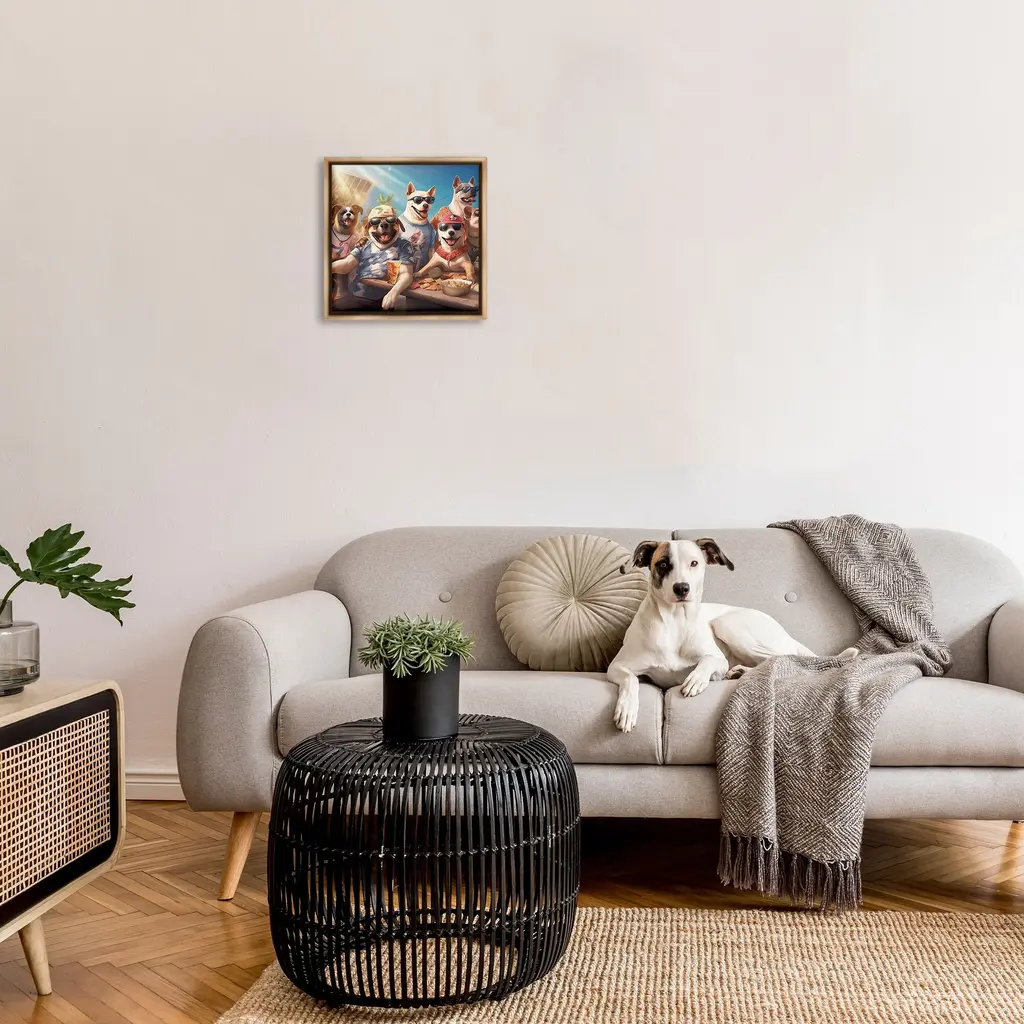 Elevate your home or office to the next level with Stupell Framed Floating Canvas Wall Art. Our premium hand-stretched canvas is mounted securely into a sturdy lightweight frame. The museum-style gap between the wrapped canvas and the box frame gives the illusion of floating artwork. Stupell Wall Art is made in the USA.Features: Dimensions: 18 x 1.7 x 18 Frame, 17 x 1.5 x 17 Canvas ArtFloating Frame Canvas Products are available in sizes 18"x18" and 25"x25". All Floating Frame Canvas Products have a 1.7" Depth.Wall Art is Ready to Hang with Hardware Free Hanging. No Installation required. For Easy Set Up Lean or Layer Artwork on Shelf or Against Wall. Artwork is Permently Fixed into the Frame.Our elevated 1.7" Thick Floating Frame is the perfect complement to our canvas style Wall Art. We use only the highest quality inks in house with industry leading printing solutions. Canvas is hand stretched over a durable wood foundation and then mounted securly into a Modern Box Frame. Made in the USA.Artwork Relates To: Fun, Animal, Canine, Dog, Mammal, Pet, Humor, Funny, Summer, VacationDesign by Jim Baldwin