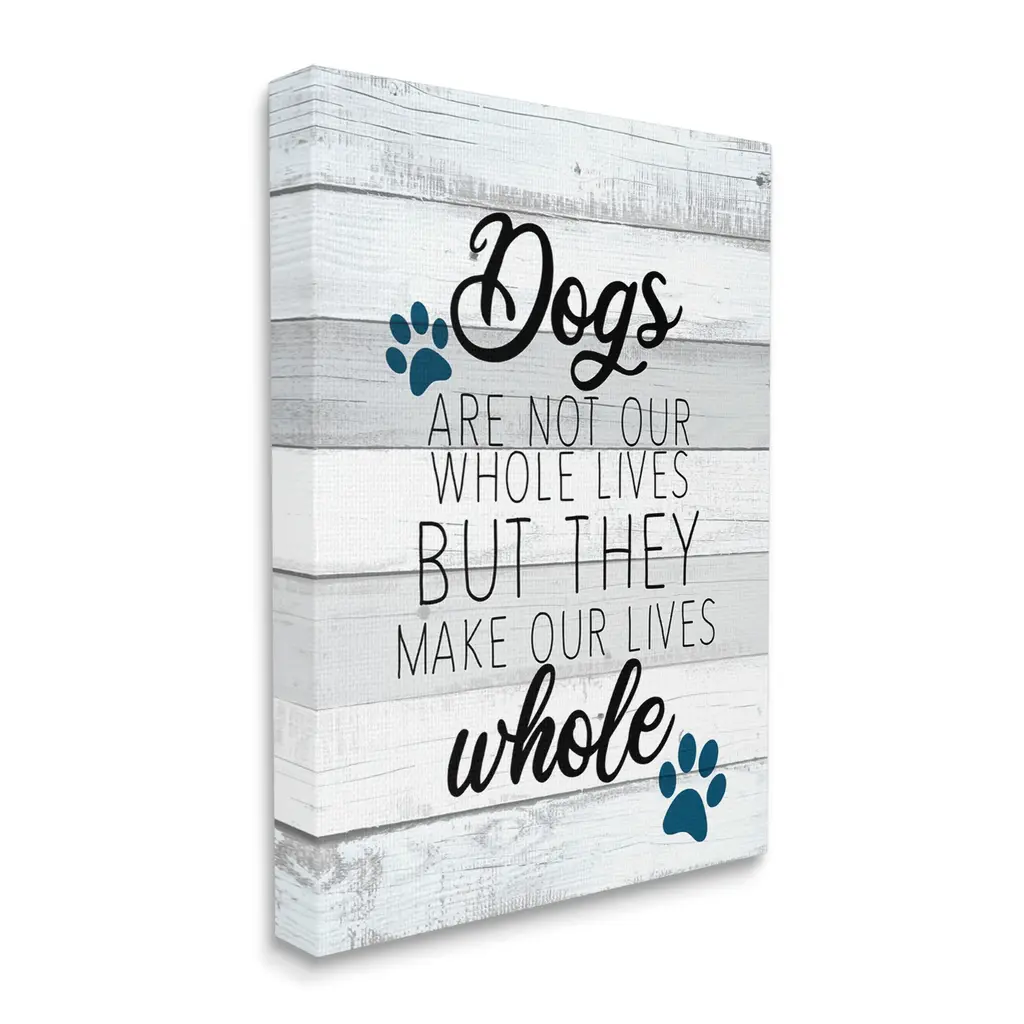 Stupell Dogs Make Our Lives Whole Paw Icon Striped Backdrop Canvas Wall Art - Grey - 24 X 30