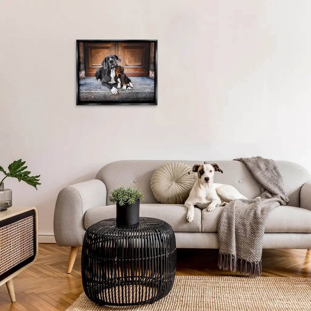 Elevate your home or office to the next level with Stupell Framed Floating Canvas Wall Art. Our premium hand-stretched canvas is mounted securely into a sturdy lightweight frame. The museum-style gap between the wrapped canvas and the box frame gives the illusion of floating artwork. Stupell Wall Art is made in the USA.Features: Dimensions: 21 x 1.7 x 17 Frame, 20 x 1.5 x 16 Canvas ArtFloating Frame Canvas Products are available in sizes 21"x17" and 31"x25". All Floating Frame Canvas Products have a 1.7" Depth.Wall Art is Ready to Hang with Hardware Free Hanging. No Installation required. For Easy Set Up Lean or Layer Artwork on Shelf or Against Wall. Artwork is Permently Fixed into the Frame.Our elevated 1.7" Thick Floating Frame is the perfect complement to our canvas style Wall Art. We use only the highest quality inks in house with industry leading printing solutions. Canvas is hand stretched over a durable wood foundation and then mounted securly into a Modern Box Frame. Made in the USA.Artwork Relates To: Animal, Canine, Mammal, Pet, Dog, Puppy, Architecture, BuildingDesign by Natalie Grosse