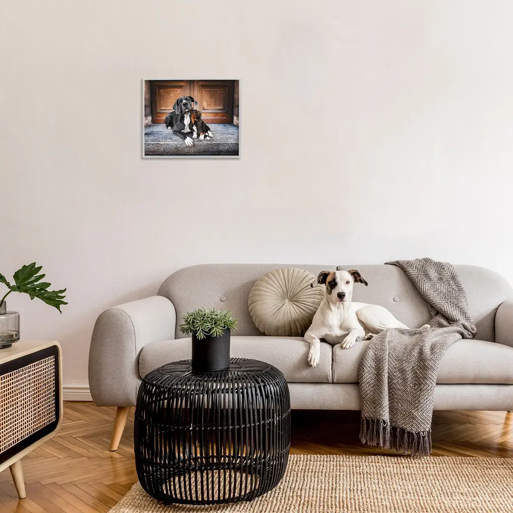 Stupell Dogs On Doorstep Framed Giclee Art Design By Natalie Grosse - 20 X 16 - Grey