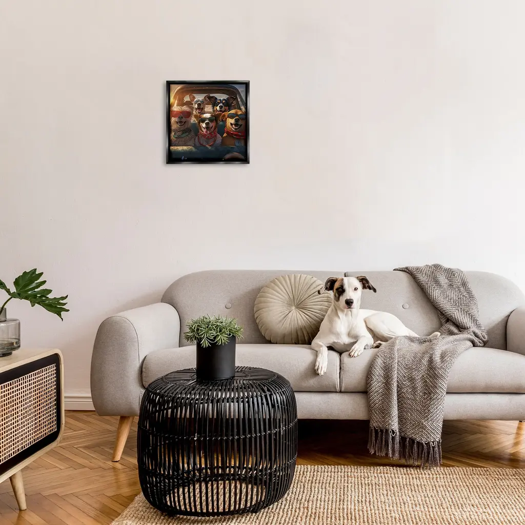 Elevate your home or office to the next level with Stupell Framed Floating Canvas Wall Art. Our premium hand-stretched canvas is mounted securely into a sturdy lightweight frame. The museum-style gap between the wrapped canvas and the box frame gives the illusion of floating artwork. Stupell Wall Art is made in the USA.Features: Dimensions: 18 x 1.7 x 18 Frame, 17 x 1.5 x 17 Canvas ArtFloating Frame Canvas Products are available in sizes 18"x18" and 25"x25". All Floating Frame Canvas Products have a 1.7" Depth.Wall Art is Ready to Hang with Hardware Free Hanging. No Installation required. For Easy Set Up Lean or Layer Artwork on Shelf or Against Wall. Artwork is Permently Fixed into the Frame.Our elevated 1.7" Thick Floating Frame is the perfect complement to our canvas style Wall Art. We use only the highest quality inks in house with industry leading printing solutions. Canvas is hand stretched over a durable wood foundation and then mounted securly into a Modern Box Frame. Made in the USA.Artwork Relates To: Fun, Vacation, Animal, Canine, Dog, Mammal, Pet, Road Trip, Summer, Humor, FunnyDesign by Jim Baldwin