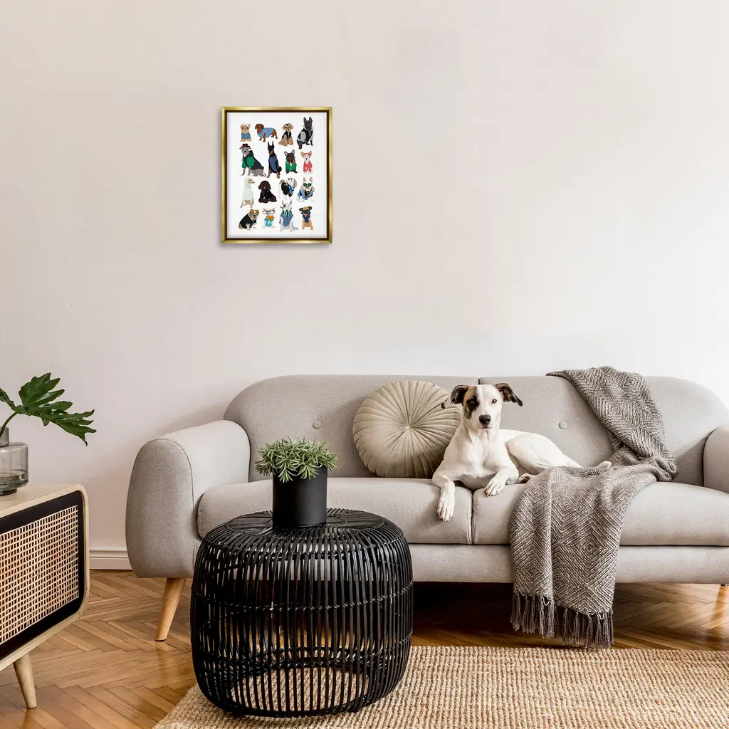 Stupell Dogs With Various Fashion Framed Floater Canvas Wall Art Design By Hanna Melin - 17 X 21 - Gold