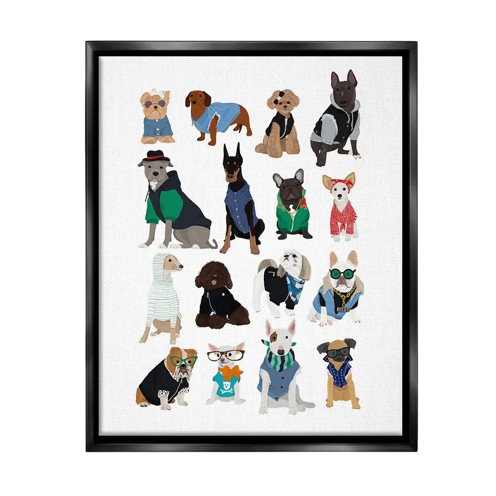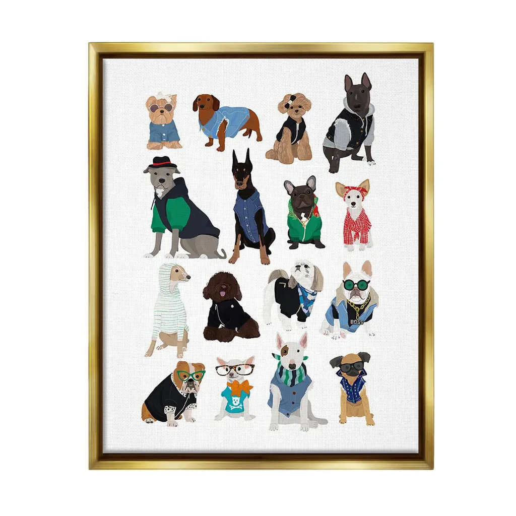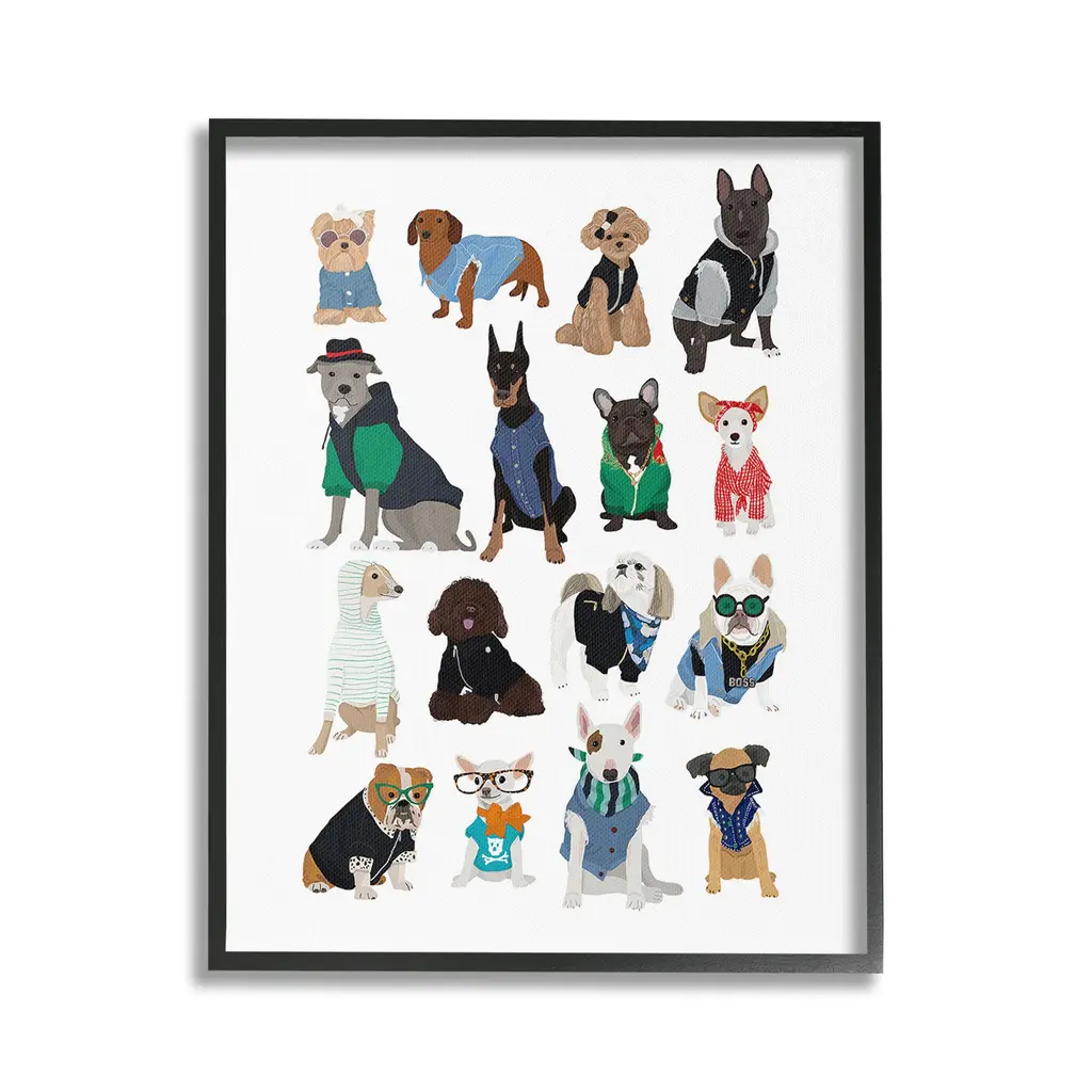 Stupell Dogs With Various Fashion Framed Giclee Art Design By Hanna Melin - 24 X 30 - White