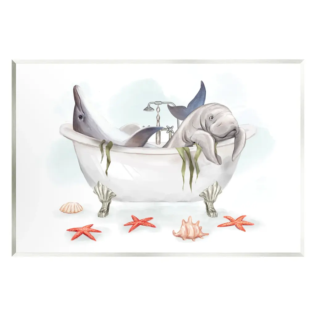 Stupell Dolphin & Manatee Bathtub Wall Plaque Art Design By Ziwei Li - 15 X 10