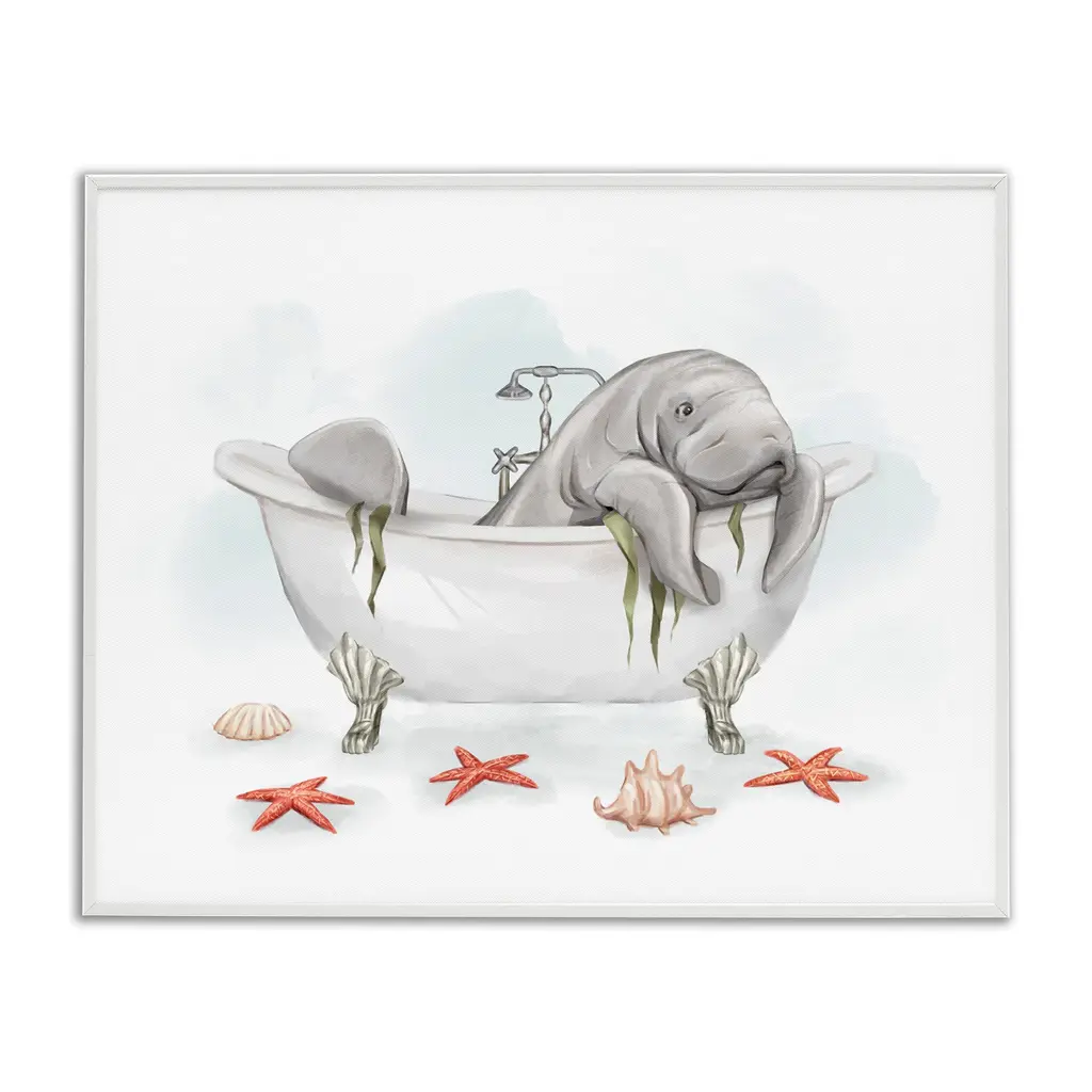 Our wall plaques start as high-quality lithograph prints mounted on durable 0.5-inch thick MDF wood. Each piece is hand finished and comes with a fresh layer of white foil on the sides to give it a crisp, clean look. Plaques arrive ready to hang without installation and come with removable plastic corners to keep them from damage in transit. Stupell Wall Art is made in the USA.Features: Dimensions: 15 x 0.5 x 10 InchesWall Plaque Sizes Include Standard: 15 x 0.5 x 10 Oversized: 19 x 0.5 x 13Wall Art is Ready to Hang with Hardware Free Hanging. No installation required. For Easy Set Up Lean or Layer Artwork on Shelf or Against Wall.All of our wall plaques start off as high quality lithograph prints that are then mounted on durable 0.5 inch thick MDF wood. Each piece is hand finished and comes with a fresh layer of foil on the sides to give it a crisp clean look. Made In USA.Artwork Relates To: Animal, Bathing, Bathroom, Nautical, Sea Life, Dolphin, ManateeDesign by Ziwei Li