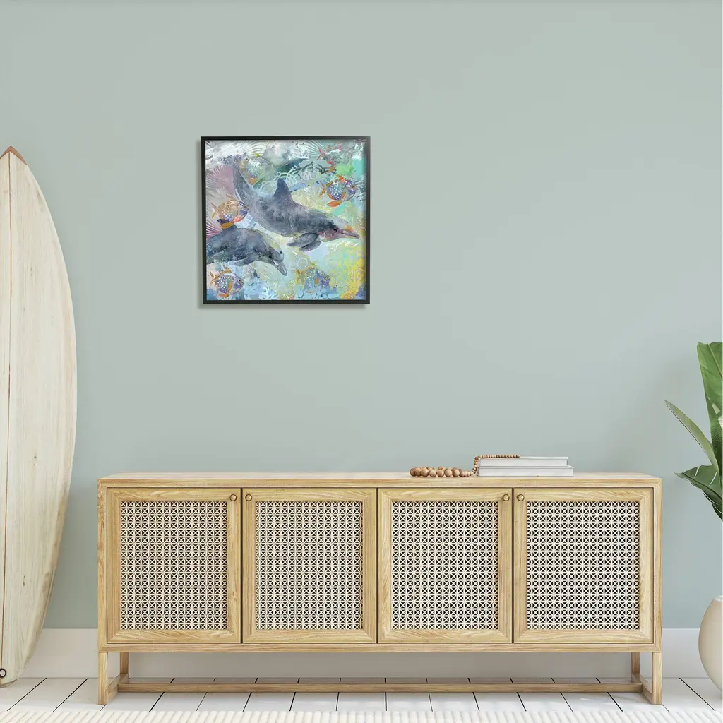 Our Framed Giclee Wall Art adds a touch of class to any space in your home or office. Frames are available in three alluring styles: black, gray farmhouse and white. Our textured artwork will add more depth and dimension to any space. Each piece is mounted with a 1.5 inch thick wood grain frame that is ready to hang! Looking for a statement piece? We have oversized artwork available. Room Type: Living Room, Den, Hallway, Office, Entryway, Study, Dining Room or Bedroom, Guest Room, Studio, Dorm or BoudoirFeatures: Dimensions: 12 x 1.5 x 12 FramedFramed Giclee Sizes Include Standard: 12 x 1.5 x 12 Large: 17 x 1.5 x 17 Oversized: 24 x 1.5 x 24Wall Art is Ready to Hang - No Installation or Hardware Needed. For Easy Set Up Lean or Layer Artwork on Shelf or Against Wall.Our giclée prints are carefully mounted on a durable MDF backing, and then perfectly finished in a 1.5 inch thick woodgrain frame. Mounted frame colors include black, gray farmhouse and white. Made In USA.Artwork Relates To: Animal, Dolphin, Mammal, Sea Life, Fish, Aquatic, Water, Modern Art, Nature, Outdoors, Sea, Reef, Abstract, FractalDesign by Evelia Designs