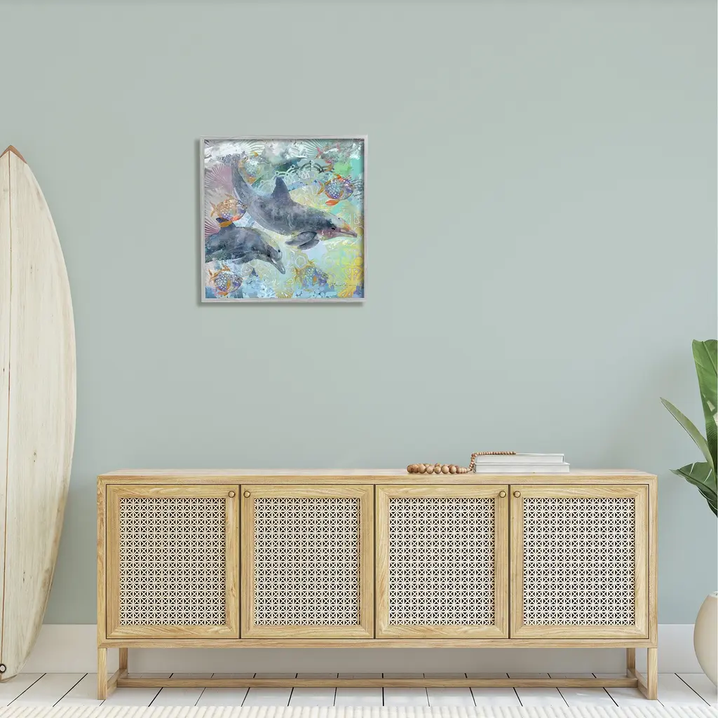 Our Framed Giclee Wall Art adds a touch of class to any space in your home or office. Frames are available in three alluring styles: black, gray farmhouse and white. Our textured artwork will add more depth and dimension to any space. Each piece is mounted with a 1.5 inch thick wood grain frame that is ready to hang! Looking for a statement piece? We have oversized artwork available. Room Type: Living Room, Den, Hallway, Office, Entryway, Study, Dining Room or Bedroom, Guest Room, Studio, Dorm or BoudoirFeatures: Dimensions: 12 x 1.5 x 12 FramedFramed Giclee Sizes Include Standard: 12 x 1.5 x 12 Large: 17 x 1.5 x 17 Oversized: 24 x 1.5 x 24Wall Art is Ready to Hang - No Installation or Hardware Needed. For Easy Set Up Lean or Layer Artwork on Shelf or Against Wall.Our giclée prints are carefully mounted on a durable MDF backing, and then perfectly finished in a 1.5 inch thick woodgrain frame. Mounted frame colors include black, gray farmhouse and white. Made In USA.Artwork Relates To: Animal, Dolphin, Mammal, Sea Life, Fish, Aquatic, Water, Modern Art, Nature, Outdoors, Sea, Reef, Abstract, FractalDesign by Evelia Designs