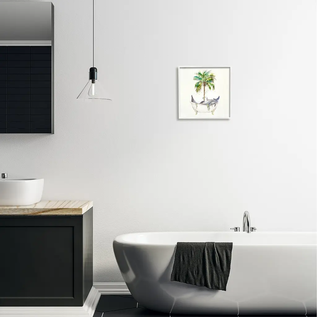 Add dimension to any room with our textured Framed Giclee Artwork. Our framed artwork is securely mounted into a 1.5-inch thick wood grain frame and ready to hang. Frames are available in three alluring styles: black, gray farmhouse and white. In addition, you should check out our oversized options if you want a statement piece. Stupell Wall Art is made in the USA.Features: Dimensions: 12 x 1.5 x 12 FramedFramed Giclee Sizes Include Standard: 12 x 1.5 x 12 Large: 17 x 1.5 x 17 Oversized: 24 x 1.5 x 24Wall Art is Ready to Hang - No Installation or Hardware Needed. For Easy Set Up Lean or Layer Artwork on Shelf or Against Wall.Our giclée prints are carefully mounted on a durable MDF backing, and then perfectly finished in a 1.5 inch thick woodgrain frame. Mounted frame colors include black, gray farmhouse and white. Made In USA.Artwork Relates To: Tub, Bathing, Bathtub, Animal, Sea Life, Bathroom, Dolphin, Palm Tree, TropicalDesign by Ziwei Li