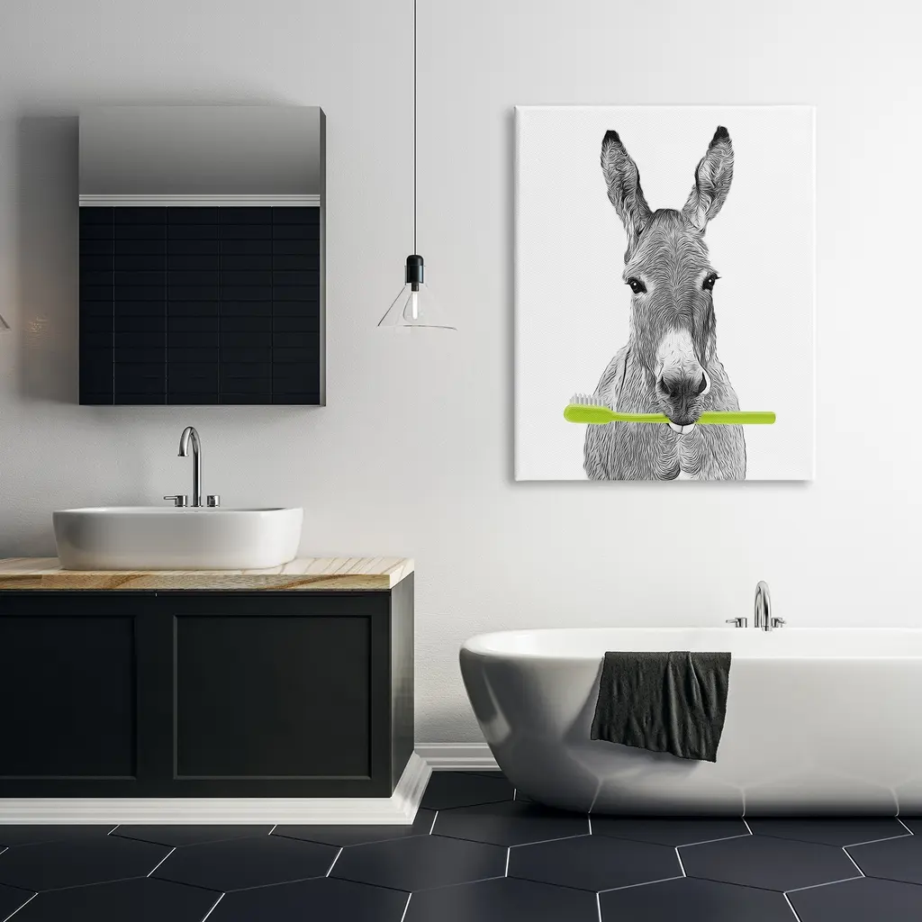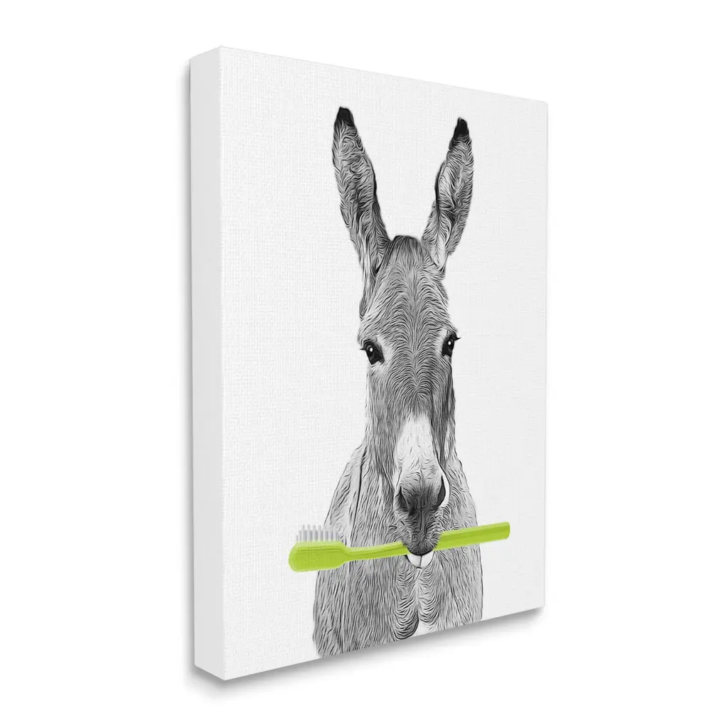 Stupell Donkey Toothbrush Funny Animal Canvas Wall Art By Annalisa Latella - 36 X 48