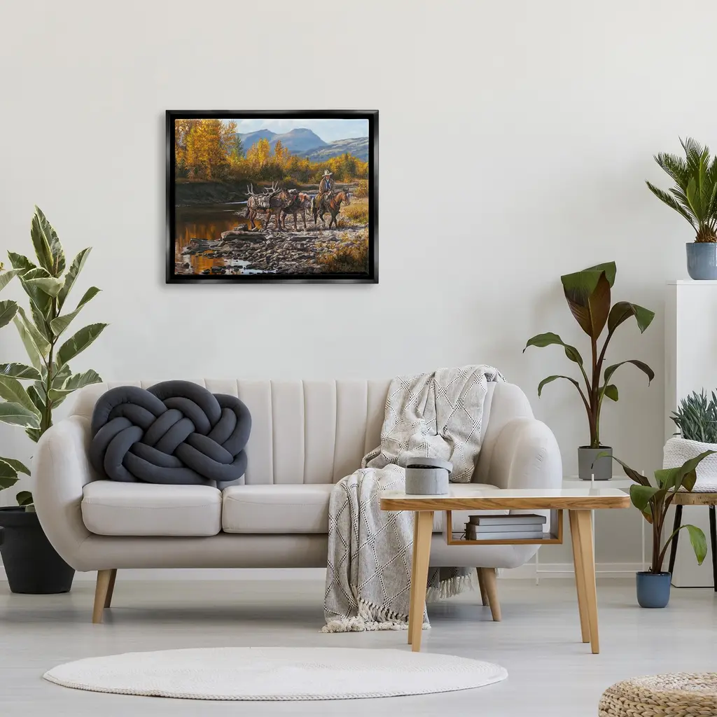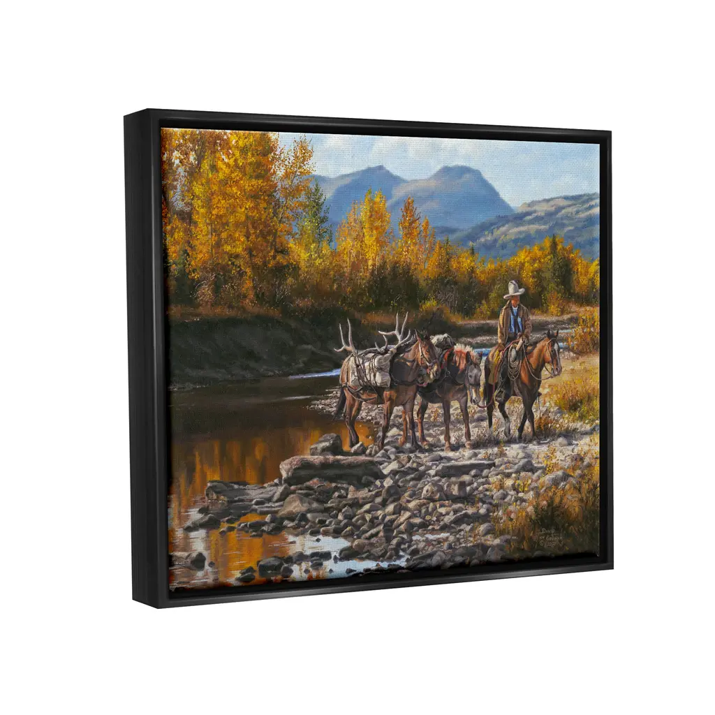 Elevate your home or office to the next level with Stupell Framed Floating Canvas Wall Art. Our premium hand-stretched canvas is mounted securely into a sturdy lightweight frame. The museum-style gap between the wrapped canvas and the box frame gives the illusion of floating artwork. Stupell Wall Art is made in the USA.Features: Dimensions: 21 x 1.7 x 17 Frame, 20 x 1.5 x 16 Canvas ArtFloating Frame Sizes Include Standard: 21 x 1.7 x 17 Oversized: 31 x 1.7 x 25Wall Art is Ready to Hang - No Installation or Hardware Needed. For Easy Set Up Lean or Layer Artwork on Shelf or Against Wall.Our elevated 1.7" Thick Floating Frame is the perfect complement to our canvas style Wall Art. We use only the highest quality inks in house with industry leading printing solutions. Canvas is hand stretched over a durable wood foundation and then mounted securly into a Modern Box Frame. Made in the USA.Artwork Relates To: Nature, Outdoors, Wilderness, Painting, Animal, Horse, Mammal, Tree, Horseback Riding, Water, Mountain, Valley, EquestrianDesign by David Graham