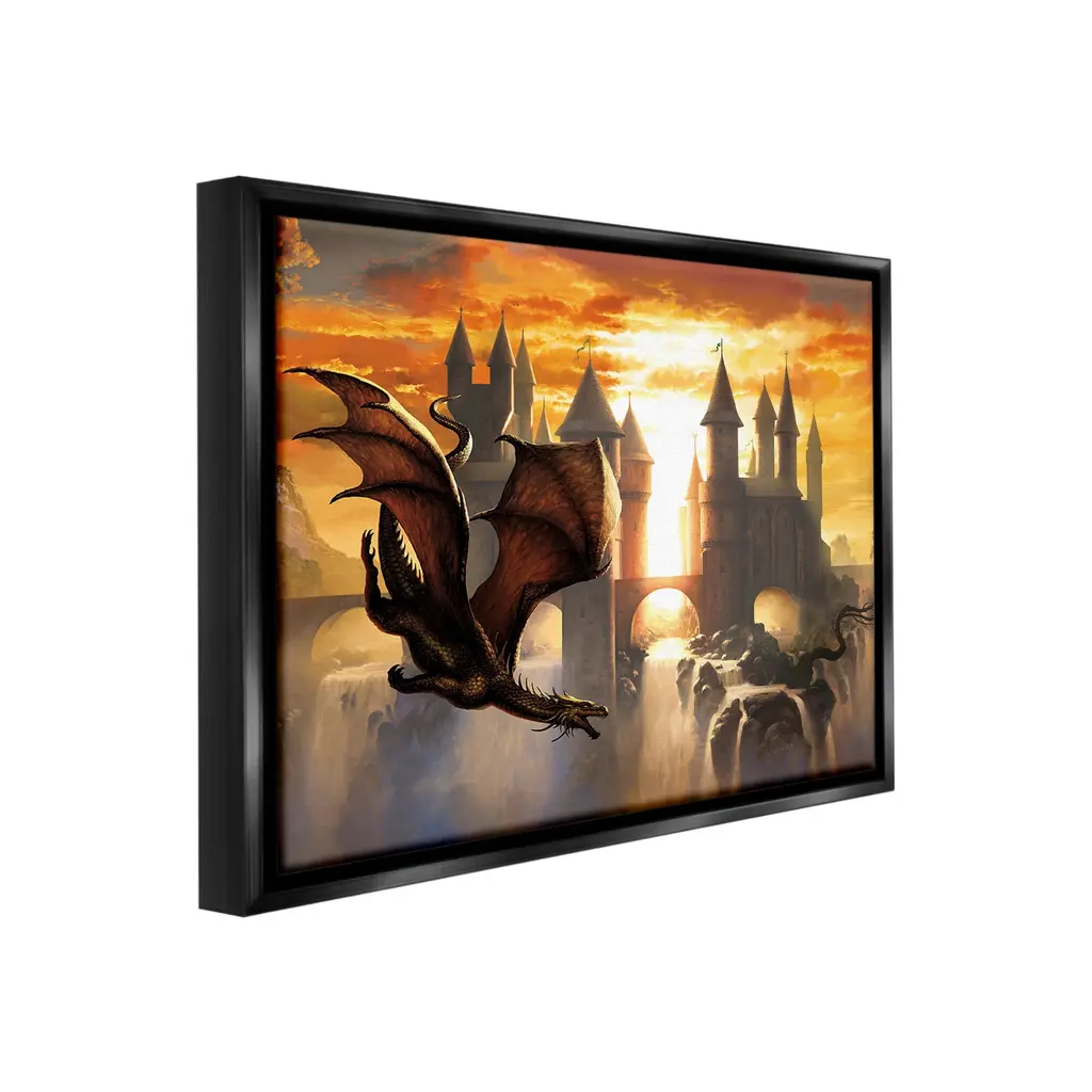 Elevate your home or office to the next level with Stupell Framed Floating Canvas Wall Art. Our premium hand-stretched canvas is mounted securely into a sturdy lightweight frame. The museum-style gap between the wrapped canvas and the box frame gives the illusion of floating artwork. Stupell Wall Art is made in the USA.Features: Dimensions: 21 x 1.7 x 17 Frame, 20 x 1.5 x 16 Canvas ArtFloating Frame Canvas Products are available in sizes 21"x17" and 31"x25". All Floating Frame Canvas Products have a 1.7" Depth.Wall Art is Ready to Hang with Hardware Free Hanging. No Installation required. For Easy Set Up Lean or Layer Artwork on Shelf or Against Wall. Artwork is Permently Fixed into the Frame.Our elevated 1.7" Thick Floating Frame is the perfect complement to our canvas style Wall Art. We use only the highest quality inks in house with industry leading printing solutions. Canvas is hand stretched over a durable wood foundation and then mounted securly into a Modern Box Frame. Made in the USA.Artwork Relates To: Dragon, Architecture, Building, Castle, Fortress, Animal, Reptile, Landscape, Surreal, Fantasy, MagicalDesign by Ciruelo