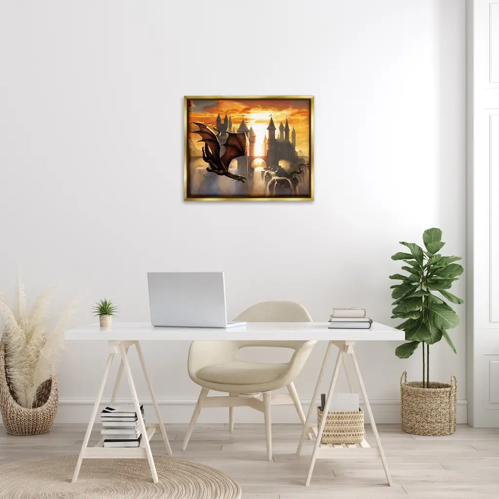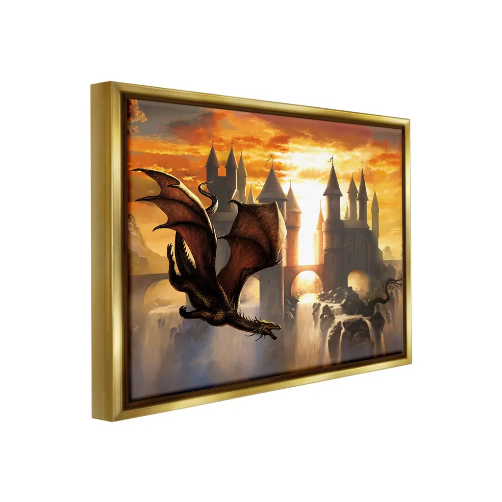 Elevate your home or office to the next level with Stupell Framed Floating Canvas Wall Art. Our premium hand-stretched canvas is mounted securely into a sturdy lightweight frame. The museum-style gap between the wrapped canvas and the box frame gives the illusion of floating artwork. Stupell Wall Art is made in the USA.Features: Dimensions: 21 x 1.7 x 17 Frame, 20 x 1.5 x 16 Canvas ArtFloating Frame Canvas Products are available in sizes 21"x17" and 31"x25". All Floating Frame Canvas Products have a 1.7" Depth.Wall Art is Ready to Hang with Hardware Free Hanging. No Installation required. For Easy Set Up Lean or Layer Artwork on Shelf or Against Wall. Artwork is Permently Fixed into the Frame.Our elevated 1.7" Thick Floating Frame is the perfect complement to our canvas style Wall Art. We use only the highest quality inks in house with industry leading printing solutions. Canvas is hand stretched over a durable wood foundation and then mounted securly into a Modern Box Frame. Made in the USA.Artwork Relates To: Dragon, Architecture, Building, Castle, Fortress, Animal, Reptile, Landscape, Surreal, Fantasy, MagicalDesign by Ciruelo