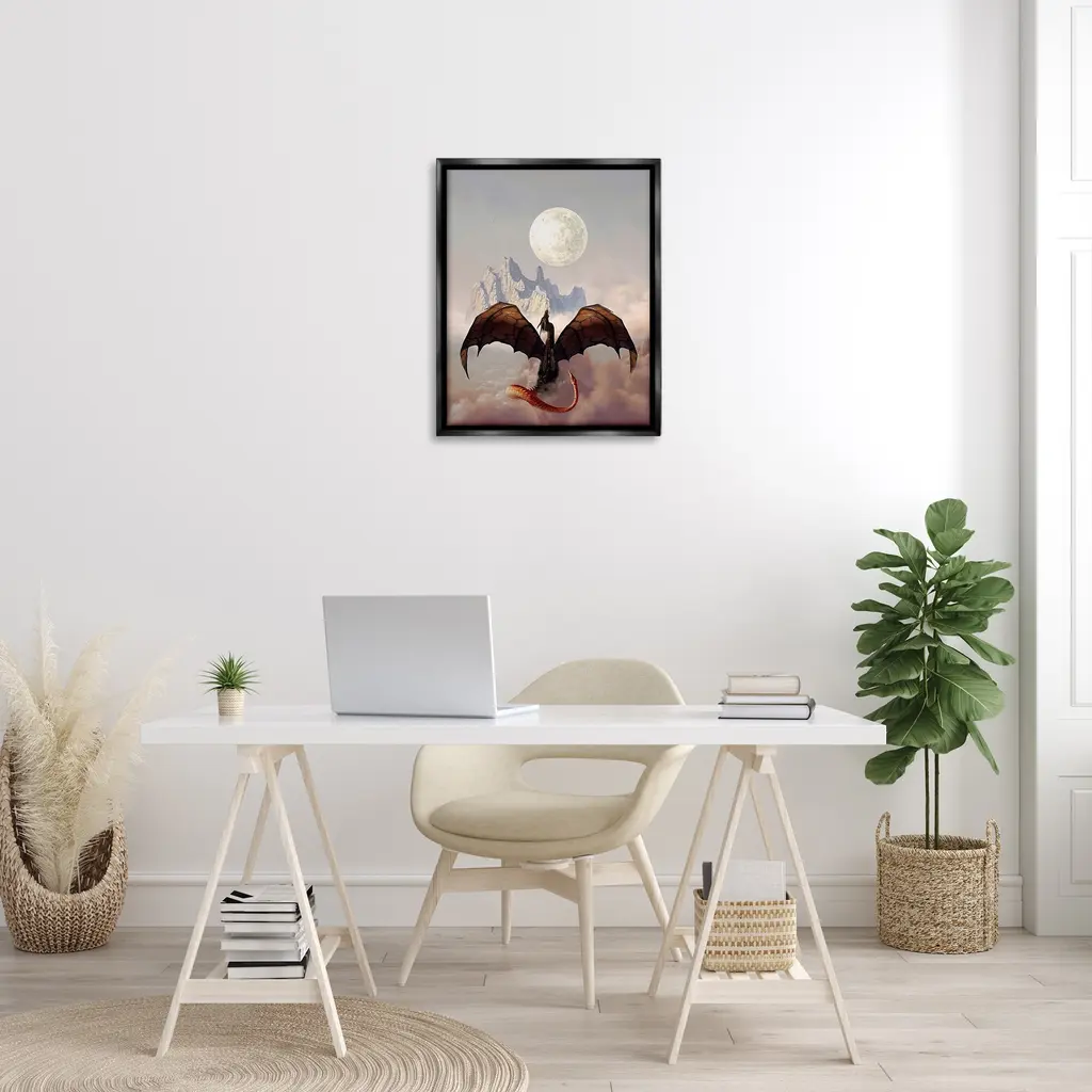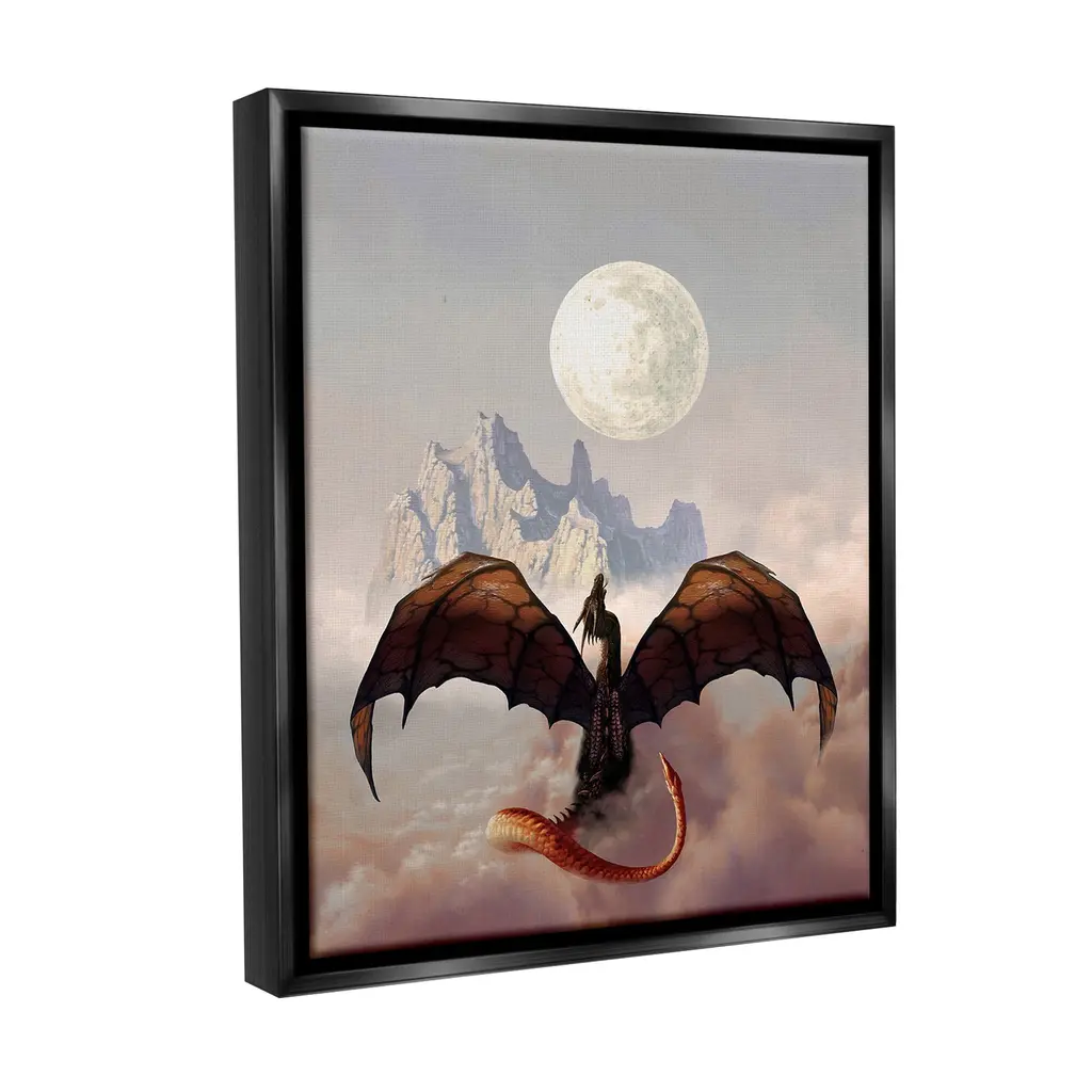 Elevate your home or office to the next level with Stupell Framed Floating Canvas Wall Art. Our premium hand-stretched canvas is mounted securely into a sturdy lightweight frame. The museum-style gap between the wrapped canvas and the box frame gives the illusion of floating artwork. Stupell Wall Art is made in the USA.Features: Dimensions: 17 x 1.7 x 21 Frame, 16 x 1.5 x 20 Canvas ArtFloating Frame Canvas Products are available in sizes 17"x21" and 25"x31". All Floating Frame Canvas Products have a 1.7" Depth.Wall Art is Ready to Hang with Hardware Free Hanging. No Installation required. For Easy Set Up Lean or Layer Artwork on Shelf or Against Wall. Artwork is Permently Fixed into the Frame.Our elevated 1.7" Thick Floating Frame is the perfect complement to our canvas style Wall Art. We use only the highest quality inks in house with industry leading printing solutions. Canvas is hand stretched over a durable wood foundation and then mounted securly into a Modern Box Frame. Made in the USA.Artwork Relates To: Dragon, Animal, Reptile, Landscape, Surreal, Fantasy, Magical, Clouds, Moon, Fog, CliffDesign by Ciruelo