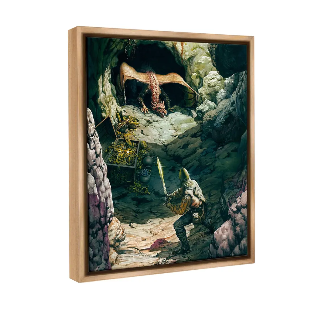 Elevate your home or office to the next level with Stupell Framed Floating Canvas Wall Art. Our premium hand-stretched canvas is mounted securely into a sturdy lightweight frame. The museum-style gap between the wrapped canvas and the box frame gives the illusion of floating artwork. Stupell Wall Art is made in the USA.Features: Dimensions: 17 x 1.7 x 21 Frame, 16 x 1.5 x 20 Canvas ArtFloating Frame Canvas Products are available in sizes 17"x21" and 25"x31". All Floating Frame Canvas Products have a 1.7" Depth.Wall Art is Ready to Hang with Hardware Free Hanging. No Installation required. For Easy Set Up Lean or Layer Artwork on Shelf or Against Wall. Artwork is Permently Fixed into the Frame.Our elevated 1.7" Thick Floating Frame is the perfect complement to our canvas style Wall Art. We use only the highest quality inks in house with industry leading printing solutions. Canvas is hand stretched over a durable wood foundation and then mounted securly into a Modern Box Frame. Made in the USA.Artwork Relates To: Dragon, Architecture, Animal, Reptile, Landscape, Surreal, Fantasy, Magical, Knight, Treasure, CaveDesign by Ciruelo