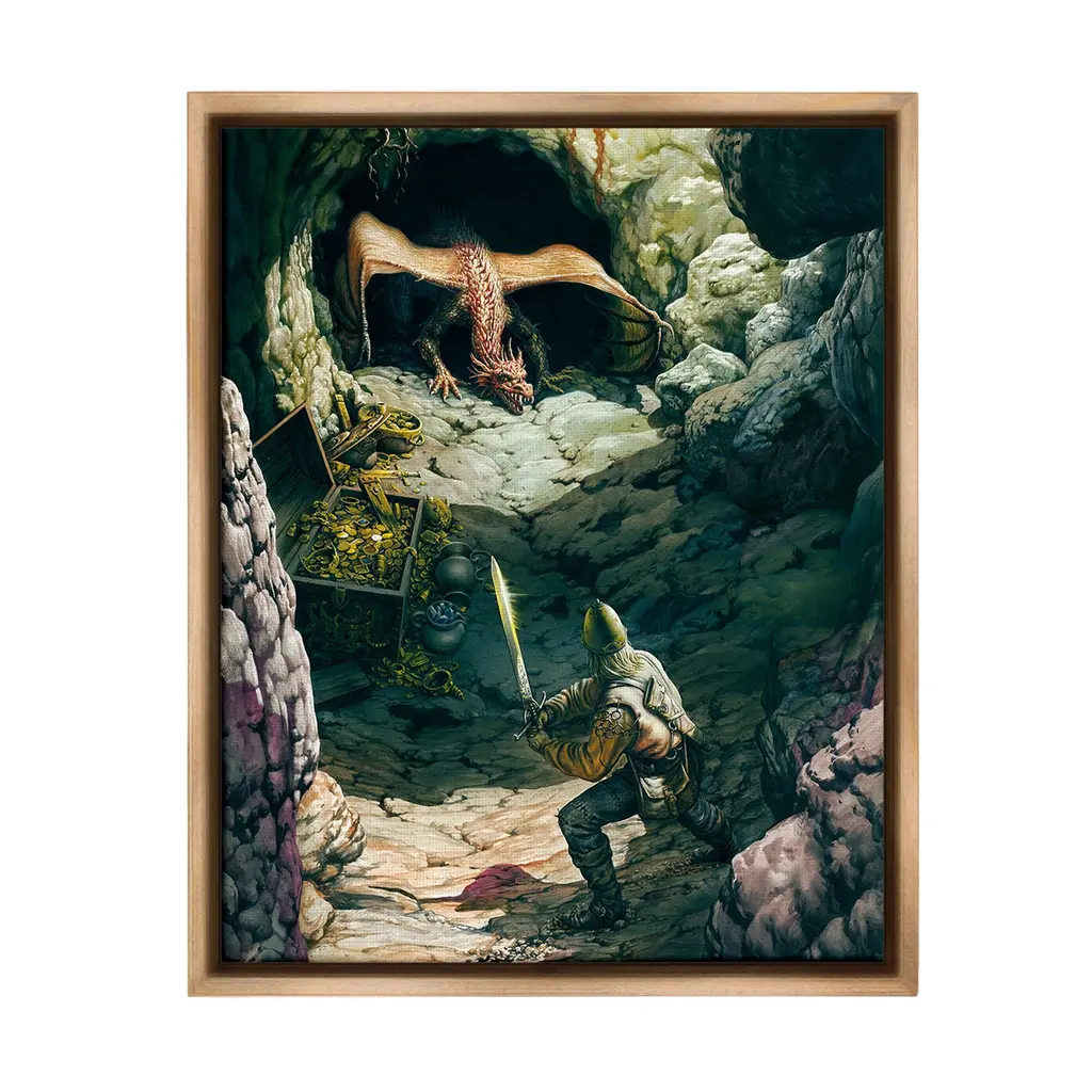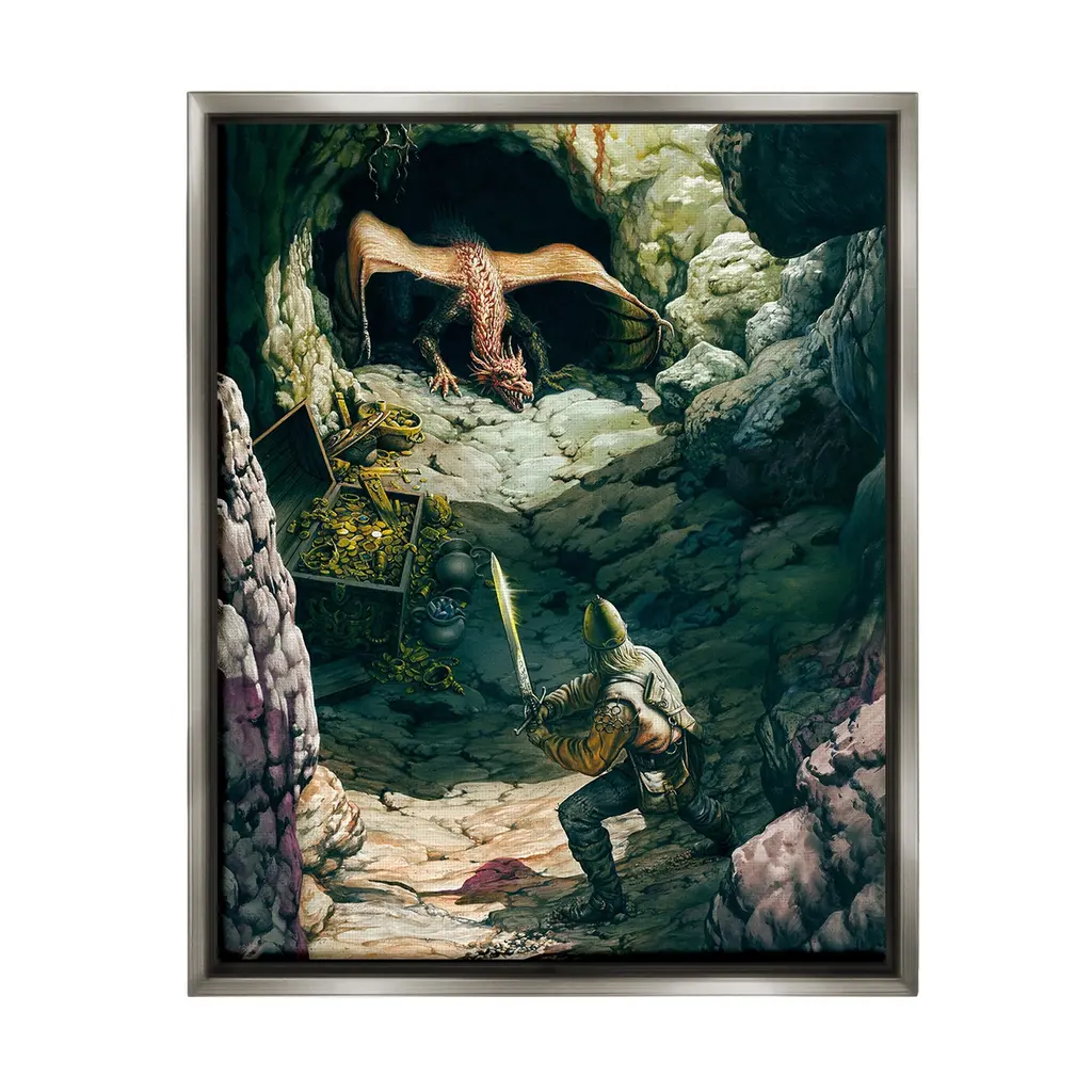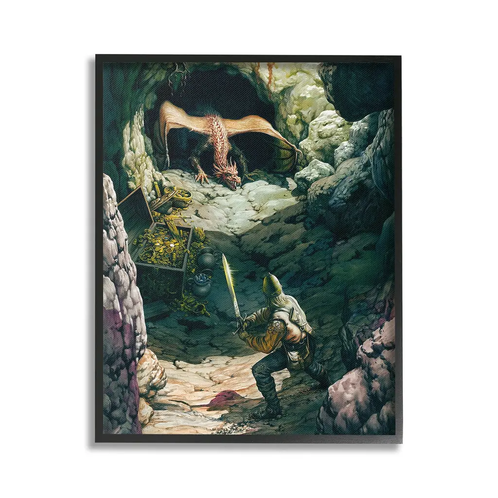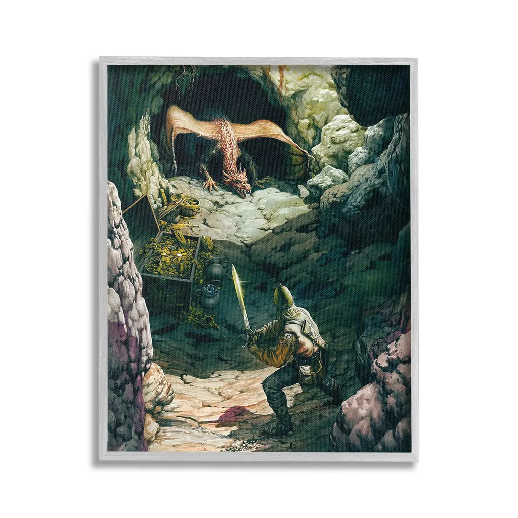 Elevate your home or office to the next level with Stupell Framed Floating Canvas Wall Art. Our premium hand-stretched canvas is mounted securely into a sturdy lightweight frame. The museum-style gap between the wrapped canvas and the box frame gives the illusion of floating artwork. Stupell Wall Art is made in the USA.Features: Dimensions: 17 x 1.7 x 21 Frame, 16 x 1.5 x 20 Canvas ArtFloating Frame Canvas Products are available in sizes 17"x21" and 25"x31". All Floating Frame Canvas Products have a 1.7" Depth.Wall Art is Ready to Hang with Hardware Free Hanging. No Installation required. For Easy Set Up Lean or Layer Artwork on Shelf or Against Wall. Artwork is Permently Fixed into the Frame.Our elevated 1.7" Thick Floating Frame is the perfect complement to our canvas style Wall Art. We use only the highest quality inks in house with industry leading printing solutions. Canvas is hand stretched over a durable wood foundation and then mounted securly into a Modern Box Frame. Made in the USA.Artwork Relates To: Dragon, Architecture, Animal, Reptile, Landscape, Surreal, Fantasy, Magical, Knight, Treasure, CaveDesign by Ciruelo