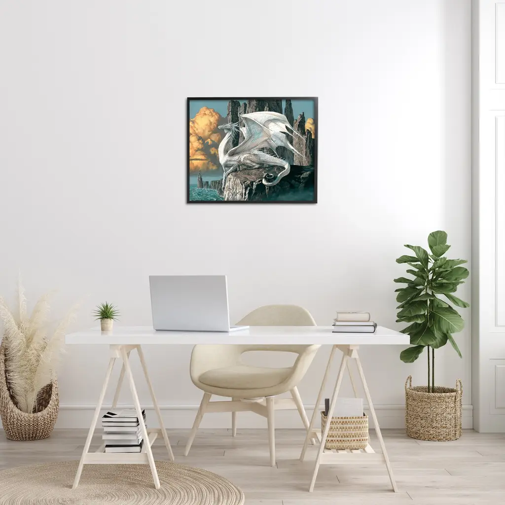 Add dimension to any room with our textured Framed Giclee Artwork. Our framed artwork is securely mounted into a 1.5-inch thick wood grain frame and ready to hang. Frames are available in three alluring styles: black, gray farmhouse and white. In addition, you should check out our oversized options if you want a statement piece. Stupell Wall Art is made in the USA.Features: Dimensions: 14 x 1.5 x 11 FramedFramed Giclee Products are available in the sizes 14"x11", 20"x16" or 30"x24". All Framed Giclee Products have a 1.5" Depth. Wall Art is Ready to Hang with Hardware Free Hanging. No installation required. For Easy Set Up Lean or Layer Artwork on Shelf or Against Wall.Our giclée prints are carefully mounted on a durable MDF backing, and then perfectly finished in a 1.5 inch thick woodgrain frame. Mounted frame colors include black, gray farmhouse and white. Made In USA.Artwork Relates To: Dragon, Cliff, Rock, Ocean, Cloud, Animal, Reptile, Landscape, Surreal, Fantasy, MagicalDesign by Ciruelo