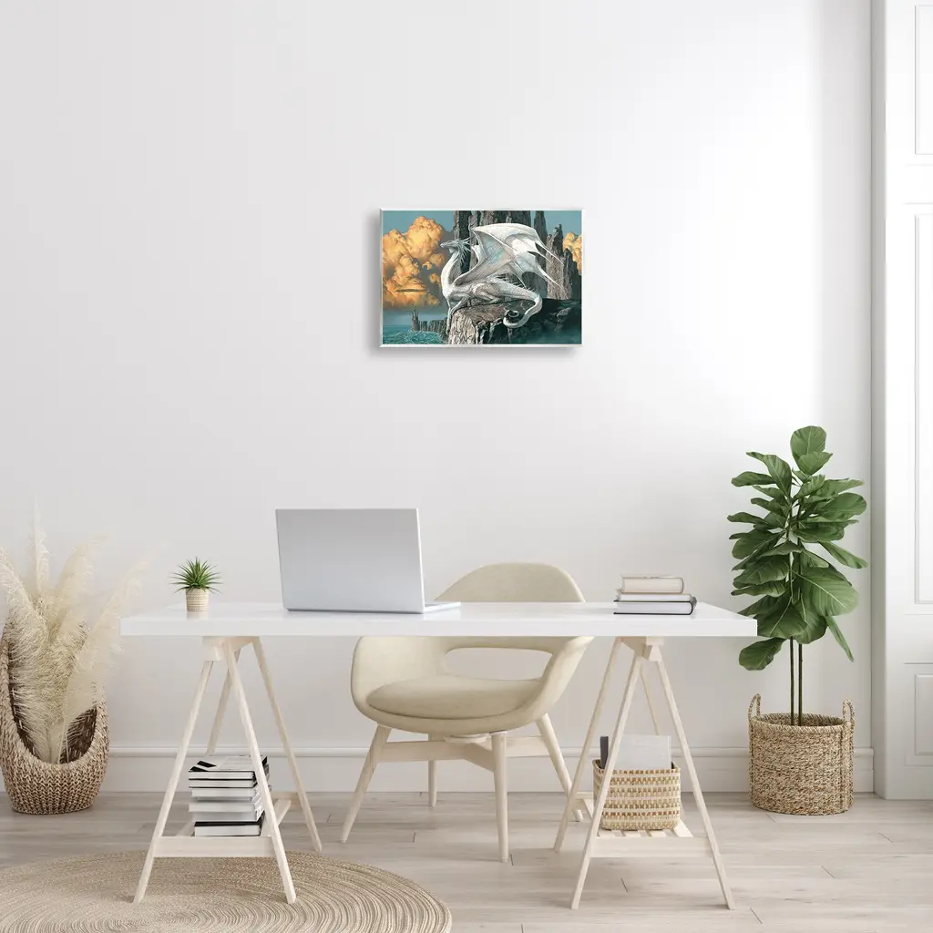 Our wall plaques start as high-quality lithograph prints mounted on durable 0.5-inch thick MDF wood. Each piece is hand finished and comes with a fresh layer of white foil on the sides to give it a crisp, clean look. Plaques arrive ready to hang without installation and come with removable plastic corners to keep them from damage in transit. Stupell Wall Art is made in the USA.Features: Dimensions: 15 x 0.5 x 10 InchesWall Plaque Product Sizes Include 15"x10" and 19"x13". All wall plaque products have a 0.5" Depth. Wall Art is Ready to Hang with Hardware Free Hanging. No installation required. For Easy Set Up Lean or Layer Artwork on Shelf or Against Wall.All of our wall plaques start off as high quality lithograph prints that are then mounted on durable 0.5 inch thick MDF wood. Each piece is hand finished and comes with a fresh layer of foil on the sides to give it a crisp clean look. Made In USA.Artwork Relates To: Dragon, Cliff, Rock, Ocean, Cloud, Animal, Reptile, Landscape, Surreal, Fantasy, MagicalDesign by Ciruelo