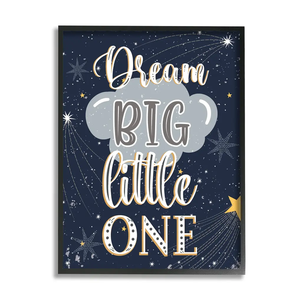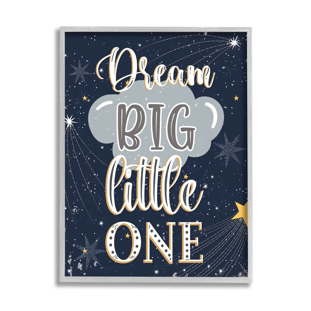 Stupell Dream Big Little One Outer Space Shooting Stars Framed Wall Art - Blue - 24 X 30 - Grey