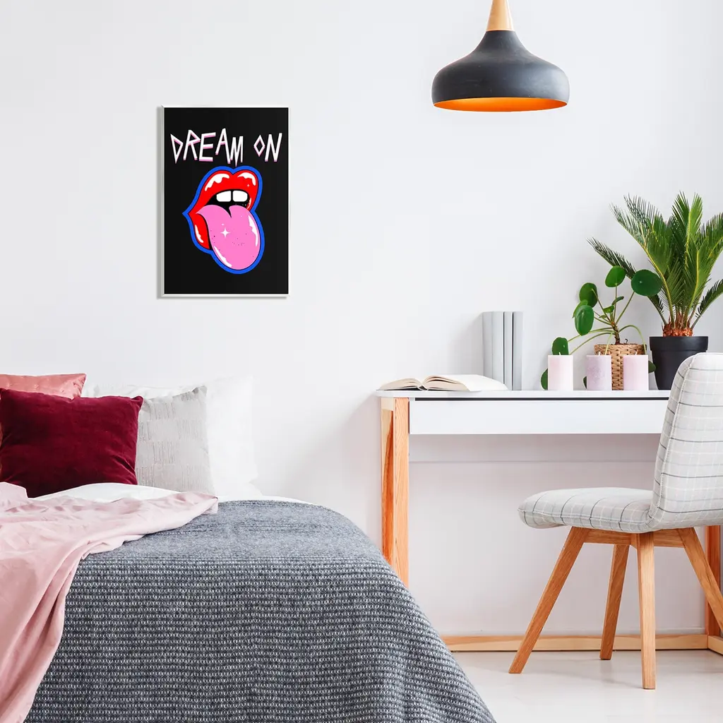 Our wall plaques start as high-quality lithograph prints mounted on durable 0.5-inch thick MDF wood. Each piece is hand finished and comes with a fresh layer of white foil on the sides to give it a crisp, clean look. Plaques arrive ready to hang without installation and come with removable plastic corners to keep them from damage in transit. Wall Art is made in the USA.Features: Dimensions: 10 x 0.5 x 15 InchesWall Plaque Sizes Include Standard: 10 x 0.5 x 15 Oversized: 13 x 0.5 x 19Wall Art is Ready to Hang with Hardware Free Hanging. No installation required. For Easy Set Up Lean or Layer Artwork on Shelf or Against Wall.All of our wall plaques start off as high quality lithograph prints that are then mounted on durable 0.5 inch thick MDF wood. Each piece is hand finished and comes with a fresh layer of foil on the sides to give it a crisp clean look. Made In USA.Artwork Relates To: Phrase, Bold, Vivid, Mouth, Lips, Dream OnDesign by House of Lulu