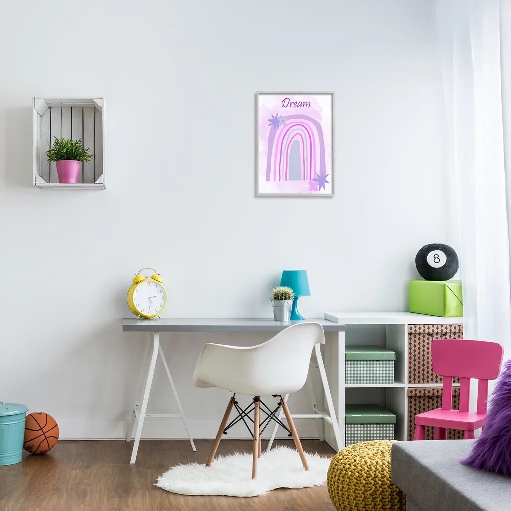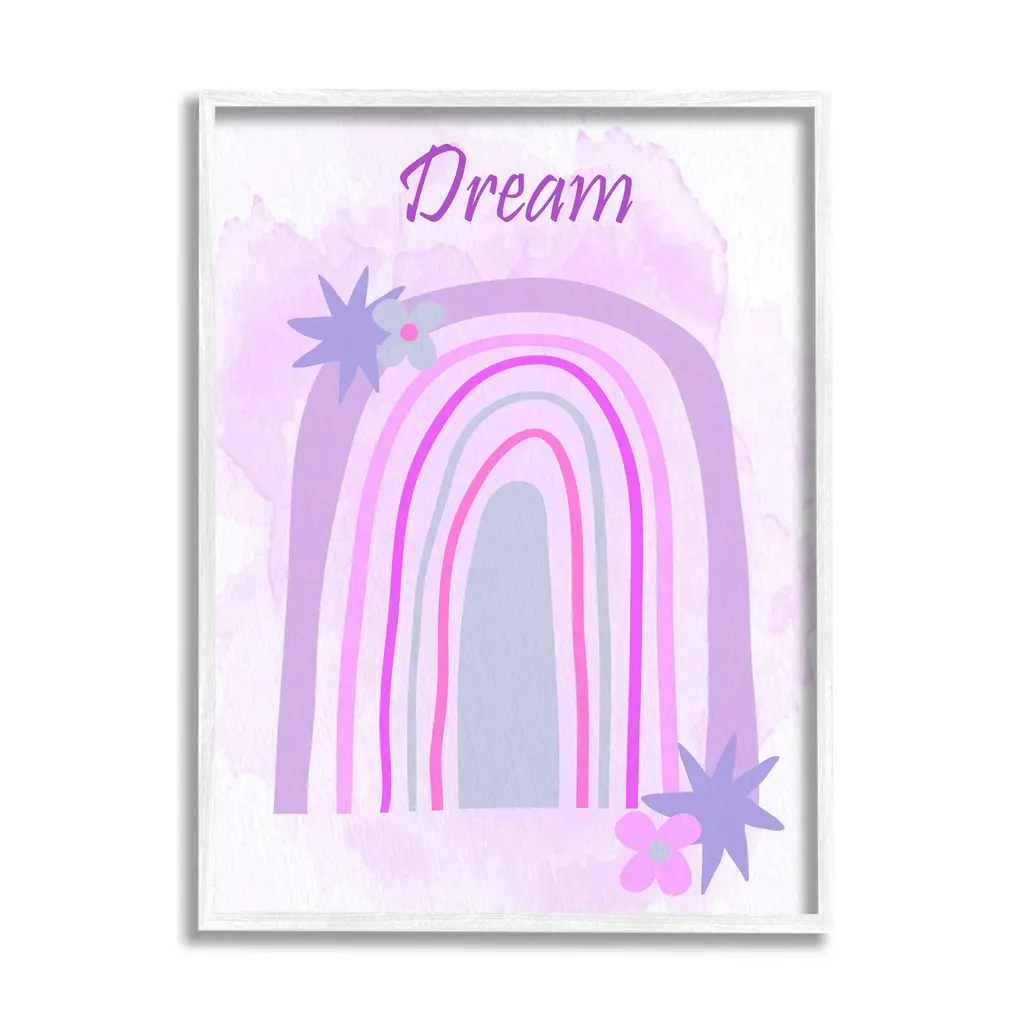 Add dimension to any room with our textured Framed Giclee Artwork. Our framed artwork is securely mounted into a 1.5-inch thick wood grain frame and ready to hang. Frames are available in three alluring styles: black, gray farmhouse and white. In addition, you should check out our oversized options if you want a statement piece. Stupell Wall Art is made in the USA.Features: Dimensions: 11 x 1.5 x 14 FramedFramed Giclee Sizes Include Standard: 11 x 1.5 x 14 Large: 16 x 1.5 x 20 Oversized: 24 x 1.5 x 30Wall Art is Ready to Hang - No Installation or Hardware Needed. For Easy Set Up Lean or Layer Artwork on Shelf or Against Wall.Our giclée prints are carefully mounted on a durable MDF backing, and then perfectly finished in a 1.5 inch thick woodgrain frame. Mounted frame colors include black, gray farmhouse and white. Made In USA.Artwork Relates To: Arch, Rainbow, Purple, Floral, Flower, DreamDesign by Kim Allen