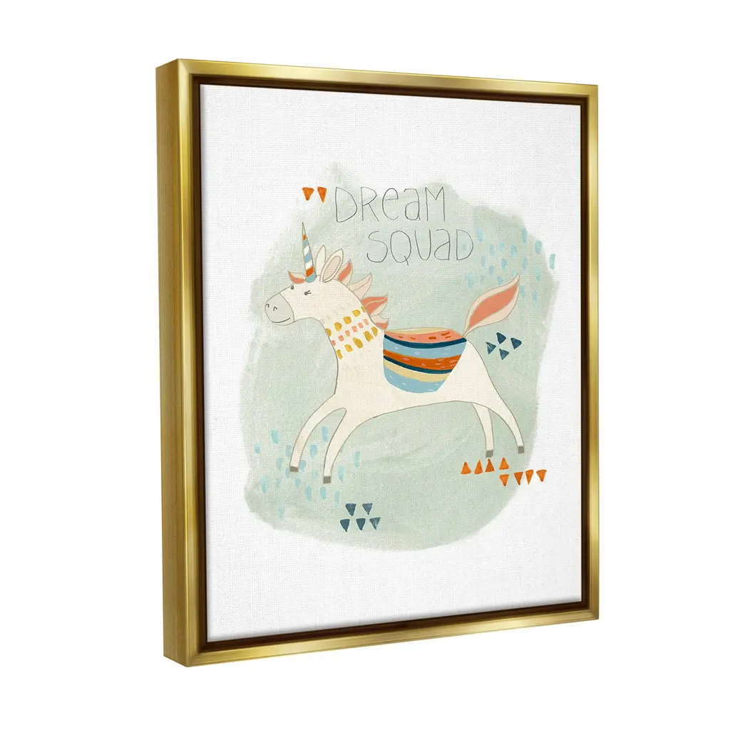 Stupell Dream Squad Unicorn Framed Floater Canvas Wall Art Design By June Erica Vess - 25 X 31 - Gold