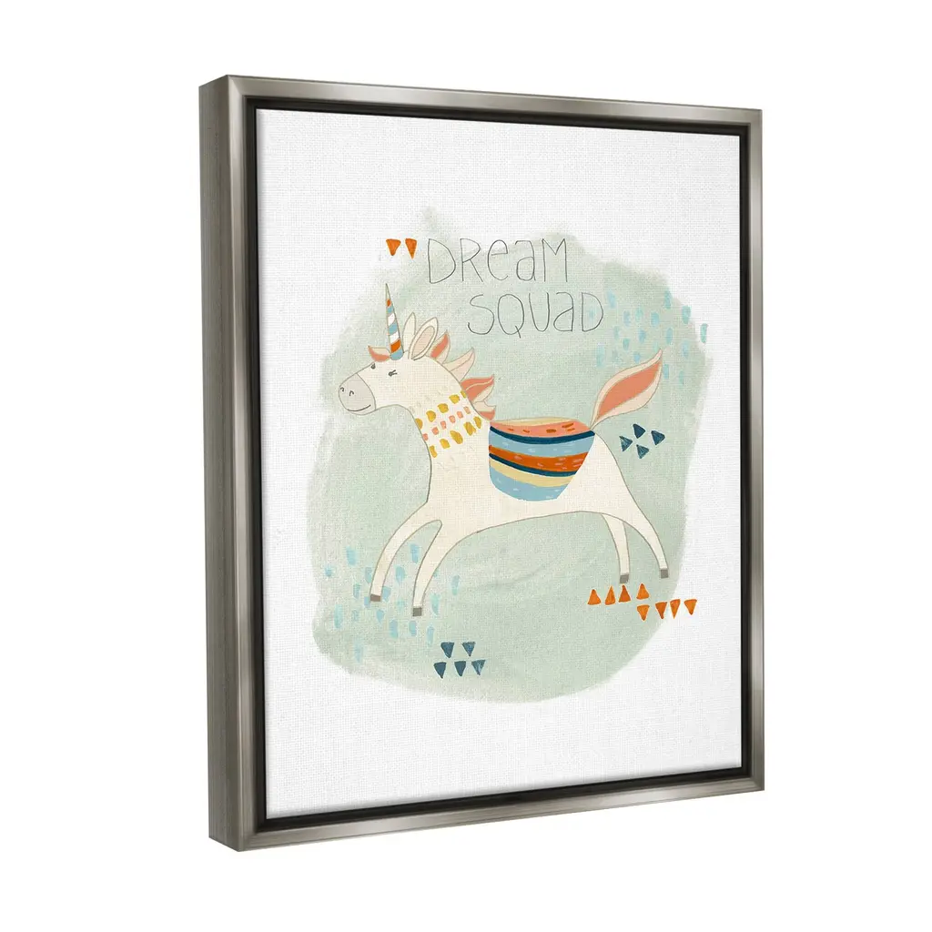 Elevate your home or office to the next level with Stupell Framed Floating Canvas Wall Art. Our premium hand-stretched canvas is mounted securely into a sturdy lightweight frame. The museum-style gap between the wrapped canvas and the box frame gives the illusion of floating artwork. Stupell Wall Art is made in the USA.Features: Dimensions: 17 x 1.7 x 21 Frame, 16 x 1.5 x 20 Canvas ArtFloating Frame Canvas Products are available in sizes 17"x21" and 25"x31". All Floating Frame Canvas Products have a 1.7" Depth.Wall Art is Ready to Hang with Hardware Free Hanging. No Installation required. For Easy Set Up Lean or Layer Artwork on Shelf or Against Wall. Artwork is Permently Fixed into the Frame.Our elevated 1.7" Thick Floating Frame is the perfect complement to our canvas style Wall Art. We use only the highest quality inks in house with industry leading printing solutions. Canvas is hand stretched over a durable wood foundation and then mounted securly into a Modern Box Frame. Made in the USA.Artwork Relates To: Animal, Fantasy, Unicorn, Kids, Heart, Shapes, Geometric, Whimsical, Horse, Dream SquadDesign by June Erica Vess