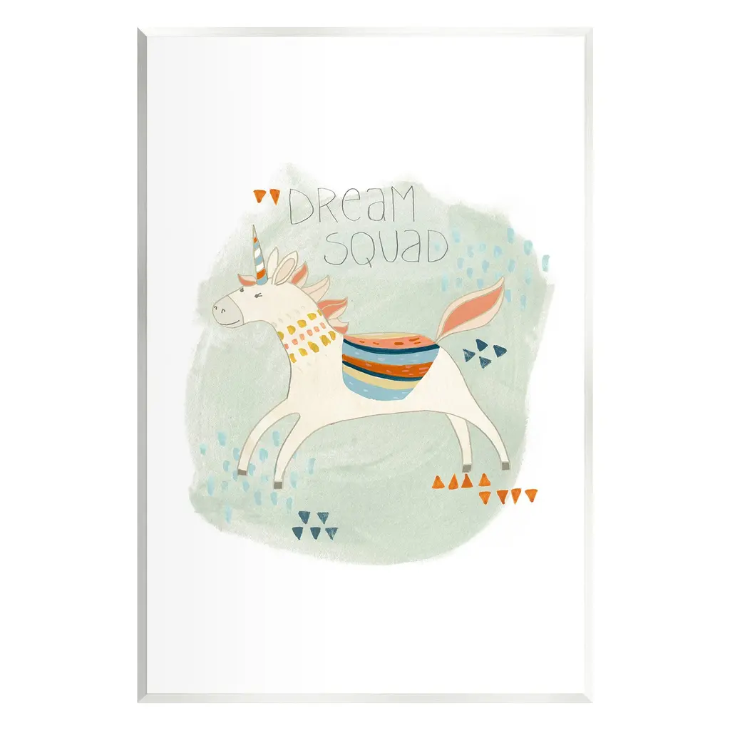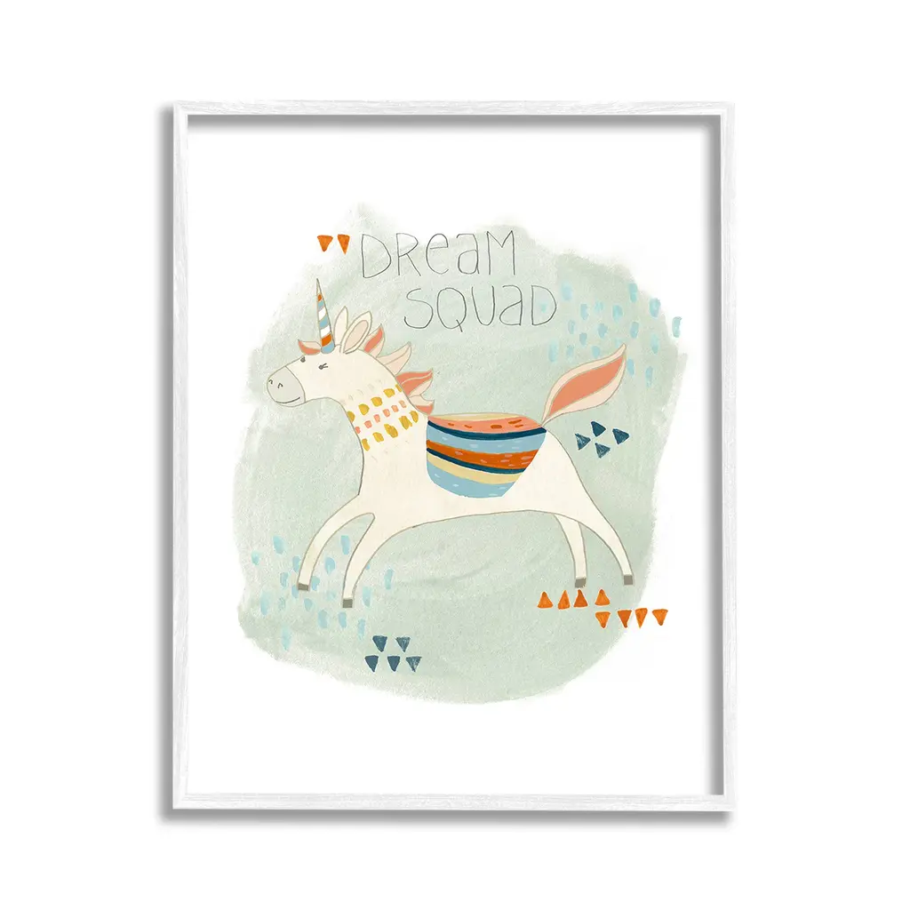 Add dimension to any room with our textured Framed Giclee Artwork. Our framed artwork is securely mounted into a 1.5-inch thick wood grain frame and ready to hang. Frames are available in three alluring styles: black, gray farmhouse and white. In addition, you should check out our oversized options if you want a statement piece. Stupell Wall Art is made in the USA.Features: Dimensions: 11 x 1.5 x 14 FramedFramed Giclee Products are available in the sizes 11"x14", 16"x20" or 24"x30". All Framed Giclee Products have a 1.5" Depth. Wall Art is Ready to Hang with Hardware Free Hanging. No installation required. For Easy Set Up Lean or Layer Artwork on Shelf or Against Wall.Our giclée prints are carefully mounted on a durable MDF backing, and then perfectly finished in a 1.5 inch thick woodgrain frame. Mounted frame colors include black, gray farmhouse and white. Made In USA.Artwork Relates To: Animal, Fantasy, Unicorn, Kids, Heart, Shapes, Geometric, Whimsical, Horse, Dream SquadDesign by June Erica Vess