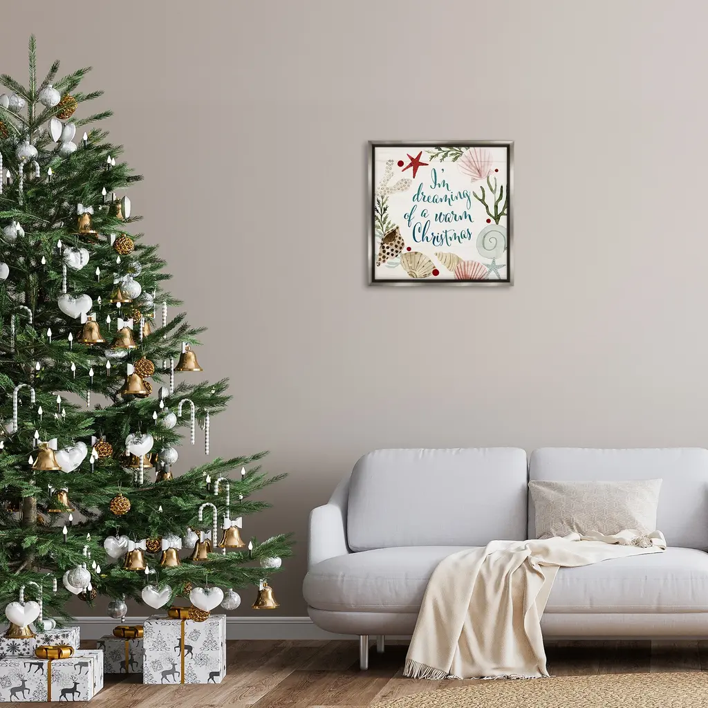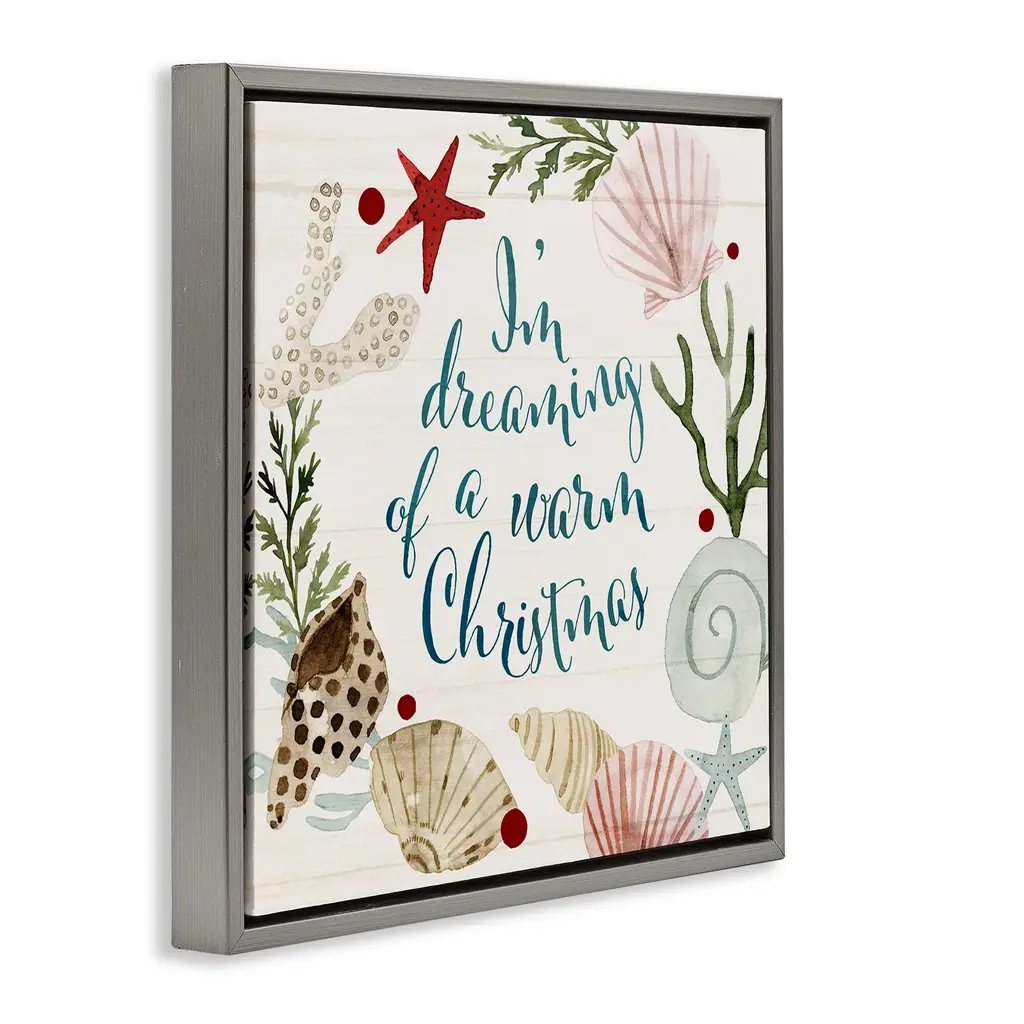 Stupell Dreaming Of Warm Christmas Phrase Framed Floater Canvas Wall Art Design By Victoria Barnes - 25 X 25 - Grey