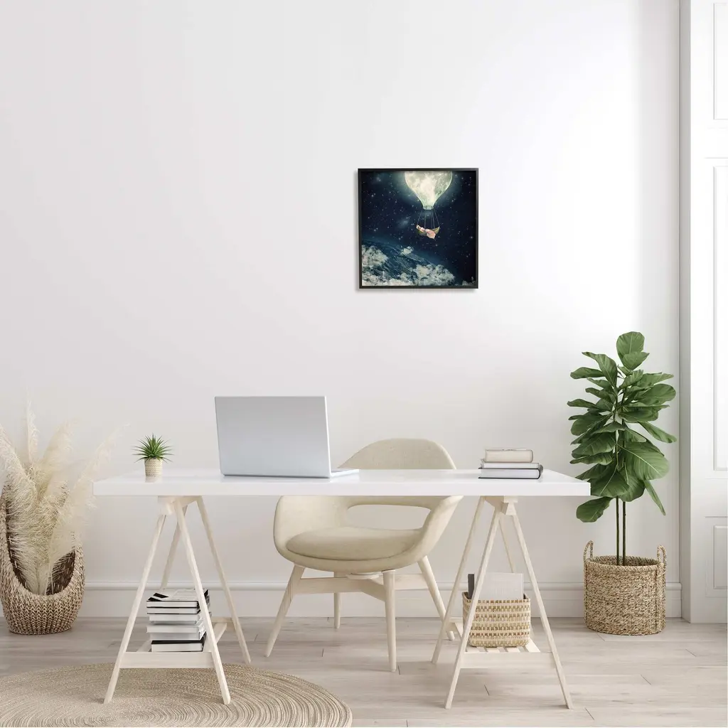Stupell Dreamlike Moon Balloon Galactic Outer Space Clouds Framed Wall Art - Blue - 17 X 17 - Black
