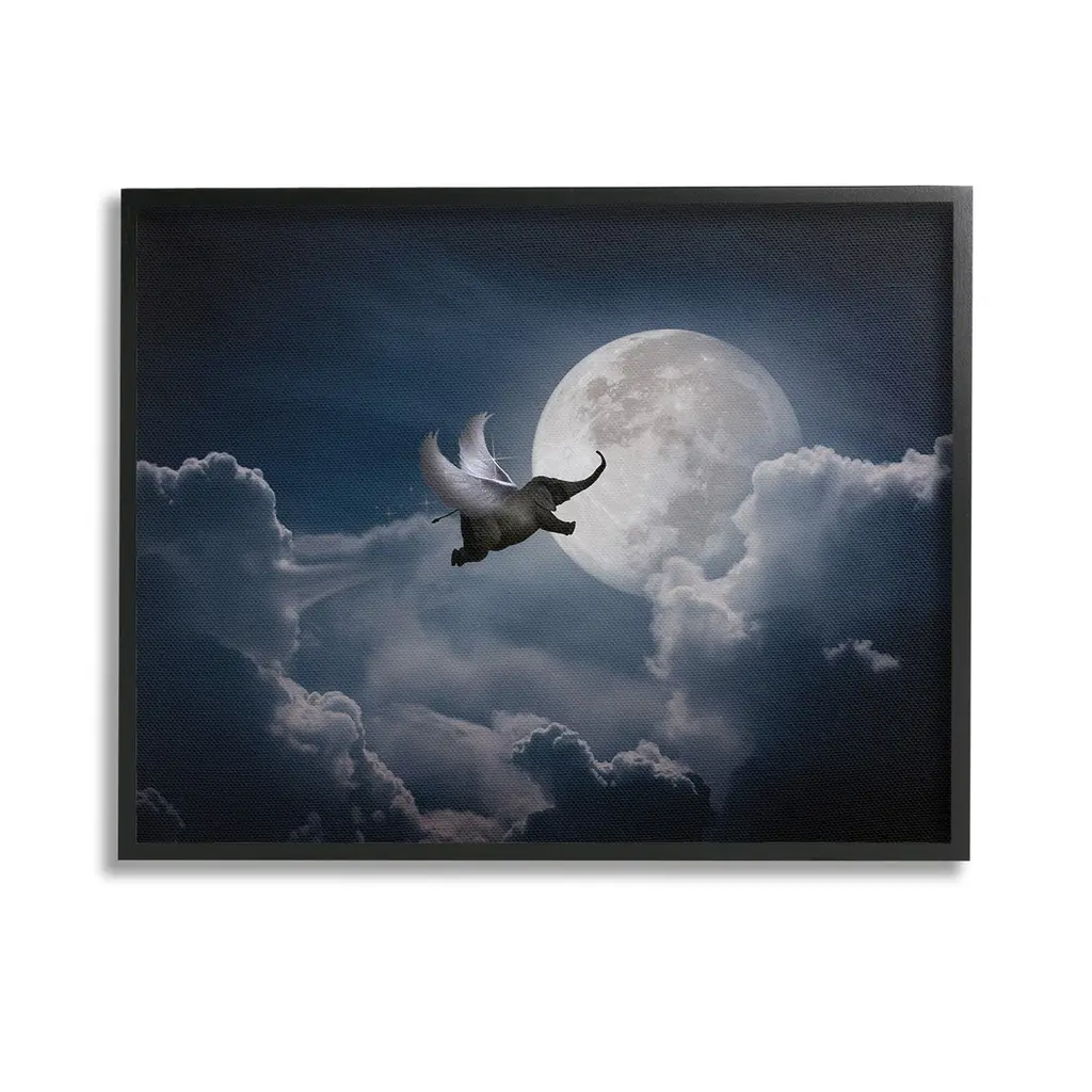 Stupell Dreamlike Moon Balloon Galactic Outer Space Clouds Framed Wall Art - Blue - 17 X 17 - Grey