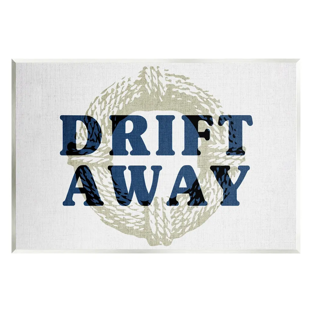 Our wall plaques start as high-quality lithograph prints mounted on durable 0.5-inch thick MDF wood. Each piece is hand finished and comes with a fresh layer of white foil on the sides to give it a crisp, clean look. Plaques arrive ready to hang without installation and come with removable plastic corners to keep them from damage in transit. Wall Art is made in the USA.Features: Dimensions: 15 x 0.5 x 10 InchesWall Plaque Sizes Include Standard: 15 x 0.5 x 10 Oversized: 19 x 0.5 x 13Wall Art is Ready to Hang with Hardware Free Hanging. No installation required. For Easy Set Up Lean or Layer Artwork on Shelf or Against Wall.All of our wall plaques start off as high quality lithograph prints that are then mounted on durable 0.5 inch thick MDF wood. Each piece is hand finished and comes with a fresh layer of foil on the sides to give it a crisp clean look. Made In USA.Artwork Relates To: Phrase, Nautical, Life Ring, Rope, Maritime, Drift AwayDesign by Lil' Rue