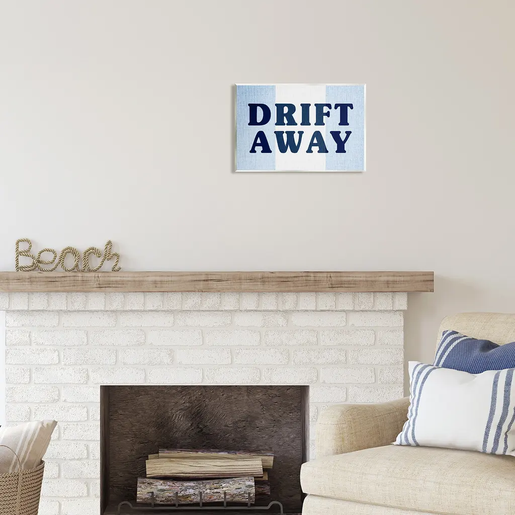 Our wall plaques start as high-quality lithograph prints mounted on durable 0.5-inch thick MDF wood. Each piece is hand finished and comes with a fresh layer of white foil on the sides to give it a crisp, clean look. Plaques arrive ready to hang without installation and come with removable plastic corners to keep them from damage in transit. Wall Art is made in the USA.Features: Dimensions: 15 x 0.5 x 10 InchesWall Plaque Sizes Include Standard: 15 x 0.5 x 10 Oversized: 19 x 0.5 x 13Wall Art is Ready to Hang with Hardware Free Hanging. No installation required. For Easy Set Up Lean or Layer Artwork on Shelf or Against Wall.All of our wall plaques start off as high quality lithograph prints that are then mounted on durable 0.5 inch thick MDF wood. Each piece is hand finished and comes with a fresh layer of foil on the sides to give it a crisp clean look. Made In USA.Artwork Relates To: Phrase, Nautical, Stripes, Maritime, Drift AwayDesign by Lil' Rue