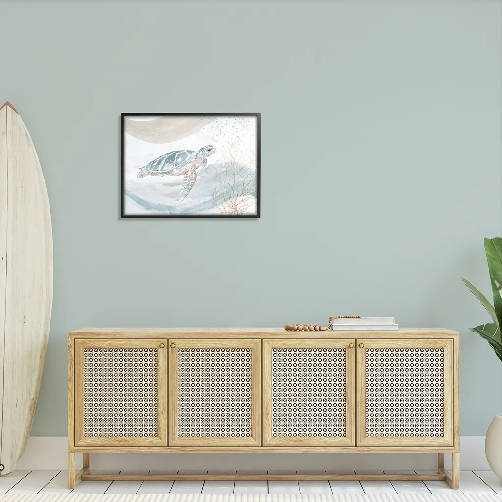 Our Framed Giclee Wall Art adds a touch of class to any space in your home or office. Frames are available in three alluring styles: black, gray farmhouse and white. Our textured artwork will add more depth and dimension to any space. Each piece is mounted with a 1.5 inch thick wood grain frame that is ready to hang! Looking for a statement piece? We have oversized artwork available.Features: Wall Art is Ready to Hang - No Installation or Hardware Needed. For Easy Set Up Lean or Layer Artwork on Shelf or Against Wall.Our giclee prints are carefully mounted on a durable MDF backing, and then perfectly finished in a 1.5 inch thick woodgrain frame. Mounted frame colors include black, gray farmhouse and white. Made In USA.Artwork Relates To: Turtle; Sea Life; Animal; Reptile; Tortoise; Sea Turtle, OceanDesign by Patricia Pinto