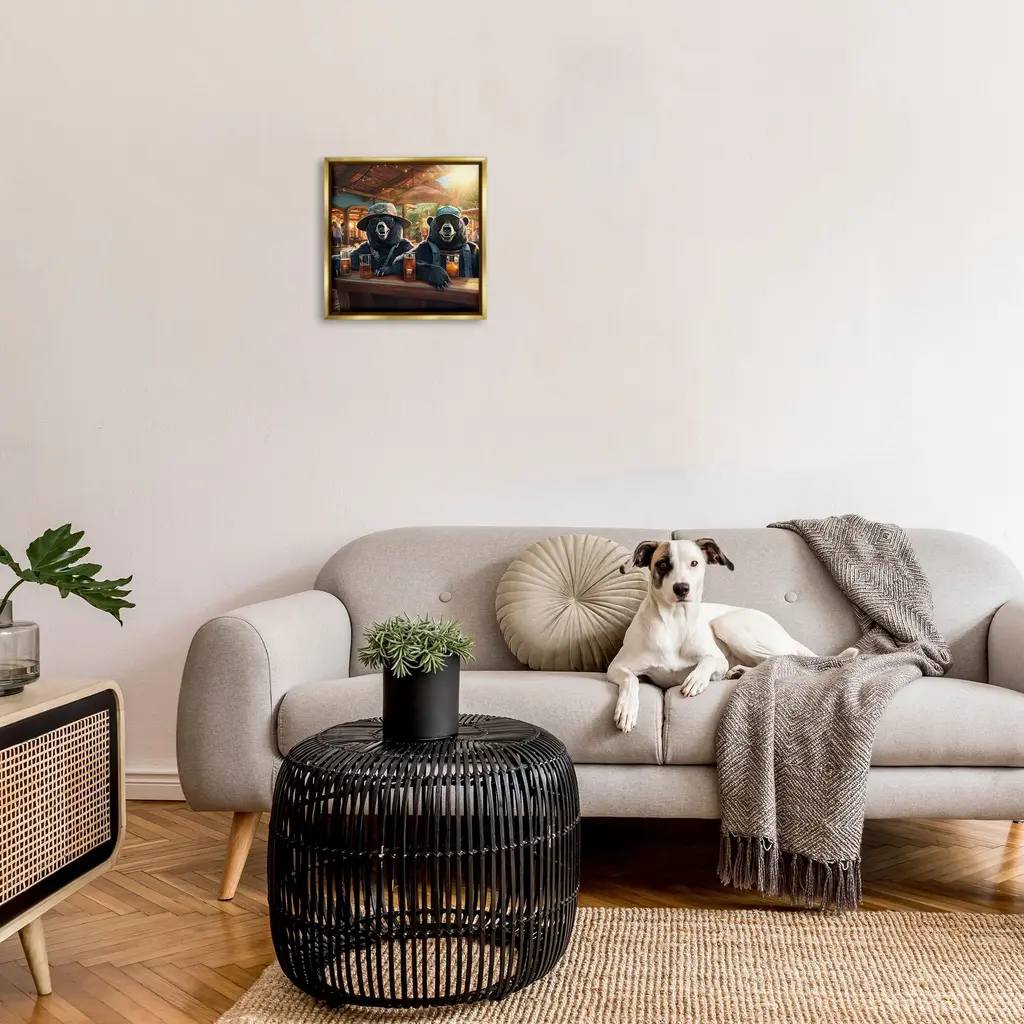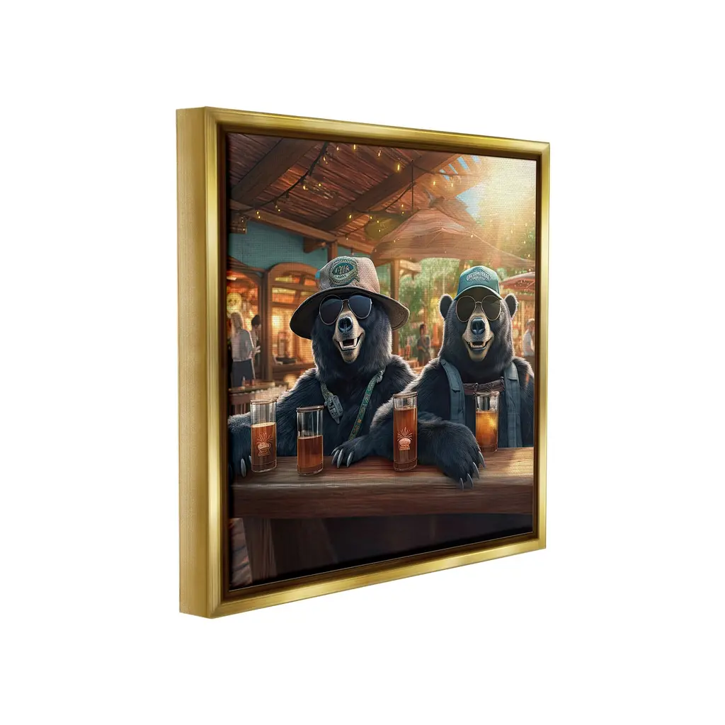 Stupell Drinking Bears At Bar Framed Floater Canvas Wall Art Design By Jim Baldwin - 18 X 18 - Gold