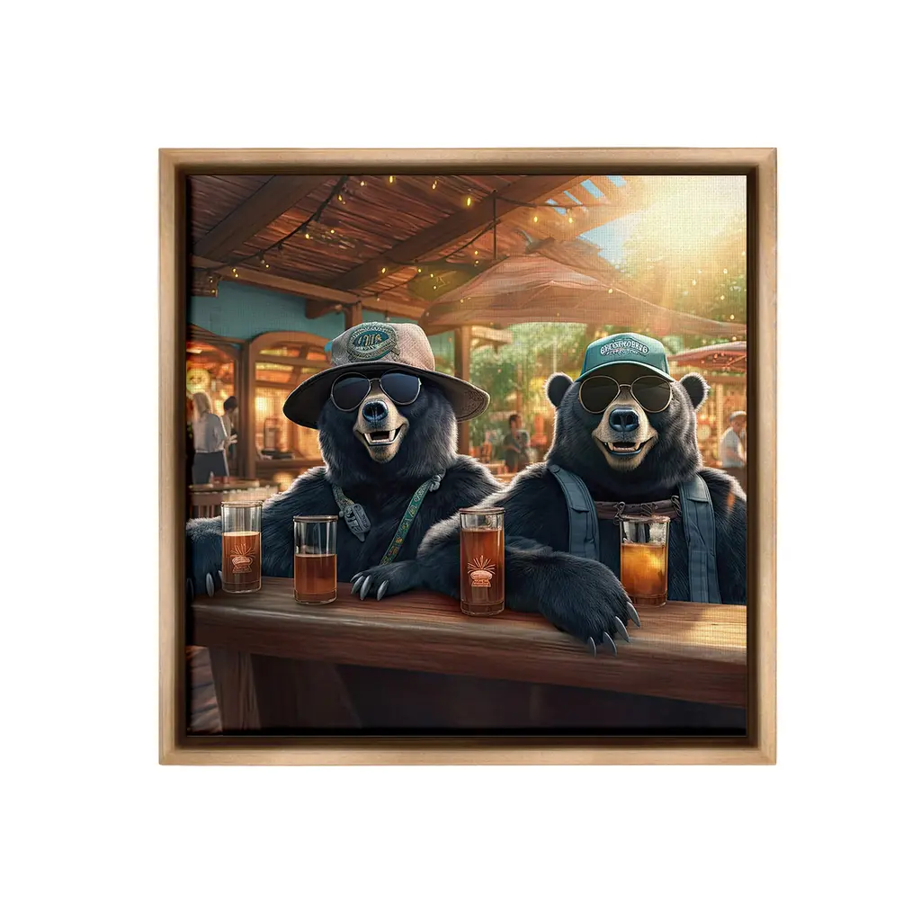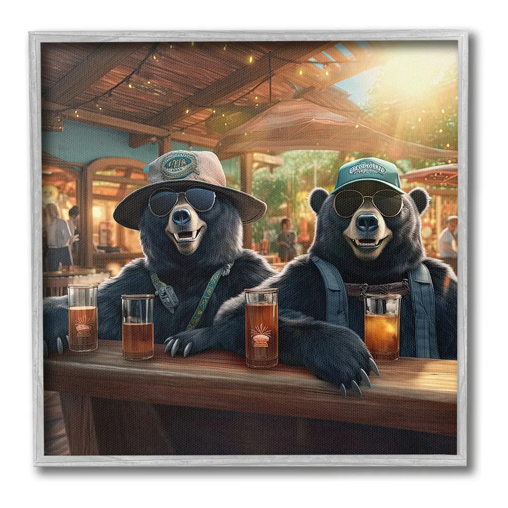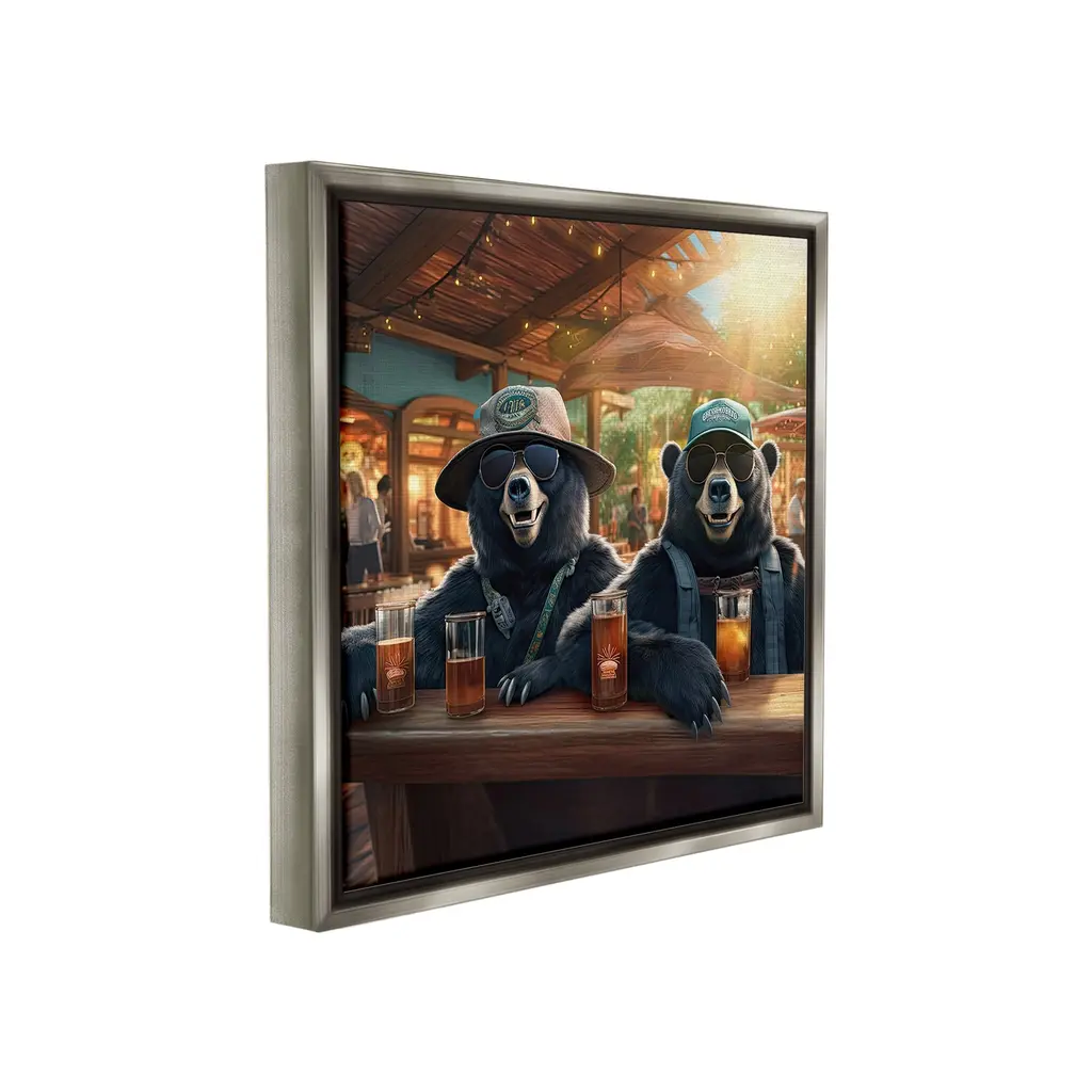 Elevate your home or office to the next level with Stupell Framed Floating Canvas Wall Art. Our premium hand-stretched canvas is mounted securely into a sturdy lightweight frame. The museum-style gap between the wrapped canvas and the box frame gives the illusion of floating artwork. Stupell Wall Art is made in the USA.Features: Dimensions: 18 x 1.7 x 18 Frame, 17 x 1.5 x 17 Canvas ArtFloating Frame Canvas Products are available in sizes 18"x18" and 25"x25". All Floating Frame Canvas Products have a 1.7" Depth.Wall Art is Ready to Hang with Hardware Free Hanging. No Installation required. For Easy Set Up Lean or Layer Artwork on Shelf or Against Wall. Artwork is Permently Fixed into the Frame.Our elevated 1.7" Thick Floating Frame is the perfect complement to our canvas style Wall Art. We use only the highest quality inks in house with industry leading printing solutions. Canvas is hand stretched over a durable wood foundation and then mounted securly into a Modern Box Frame. Made in the USA.Artwork Relates To: Alcohol, Beer, Beverage, Animal, Wildlife, Bar, Drink, Bear, Humor, FunnyDesign by Jim Baldwin