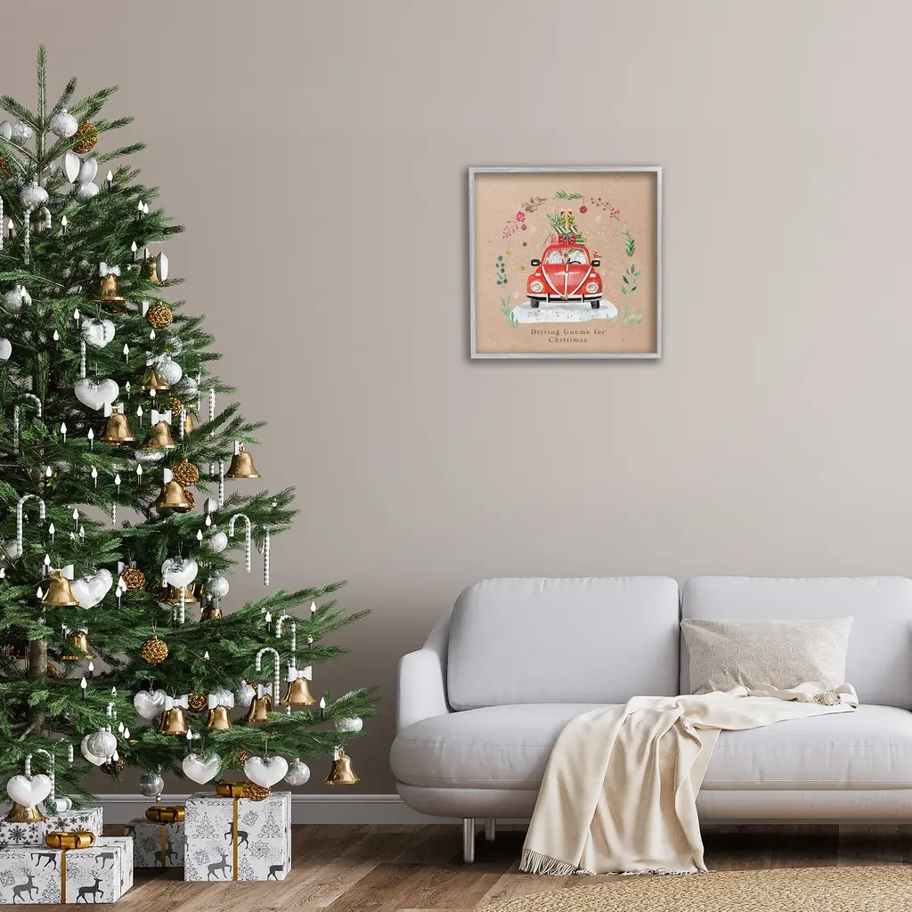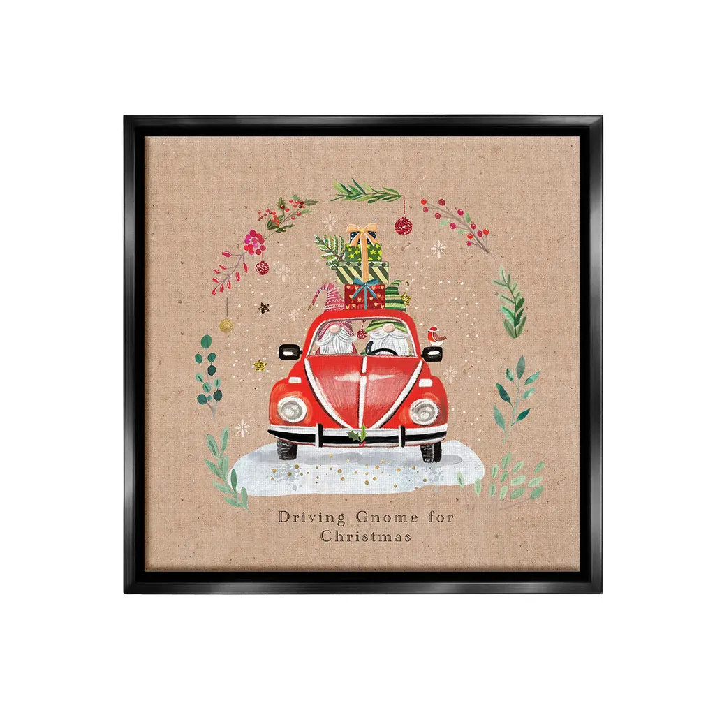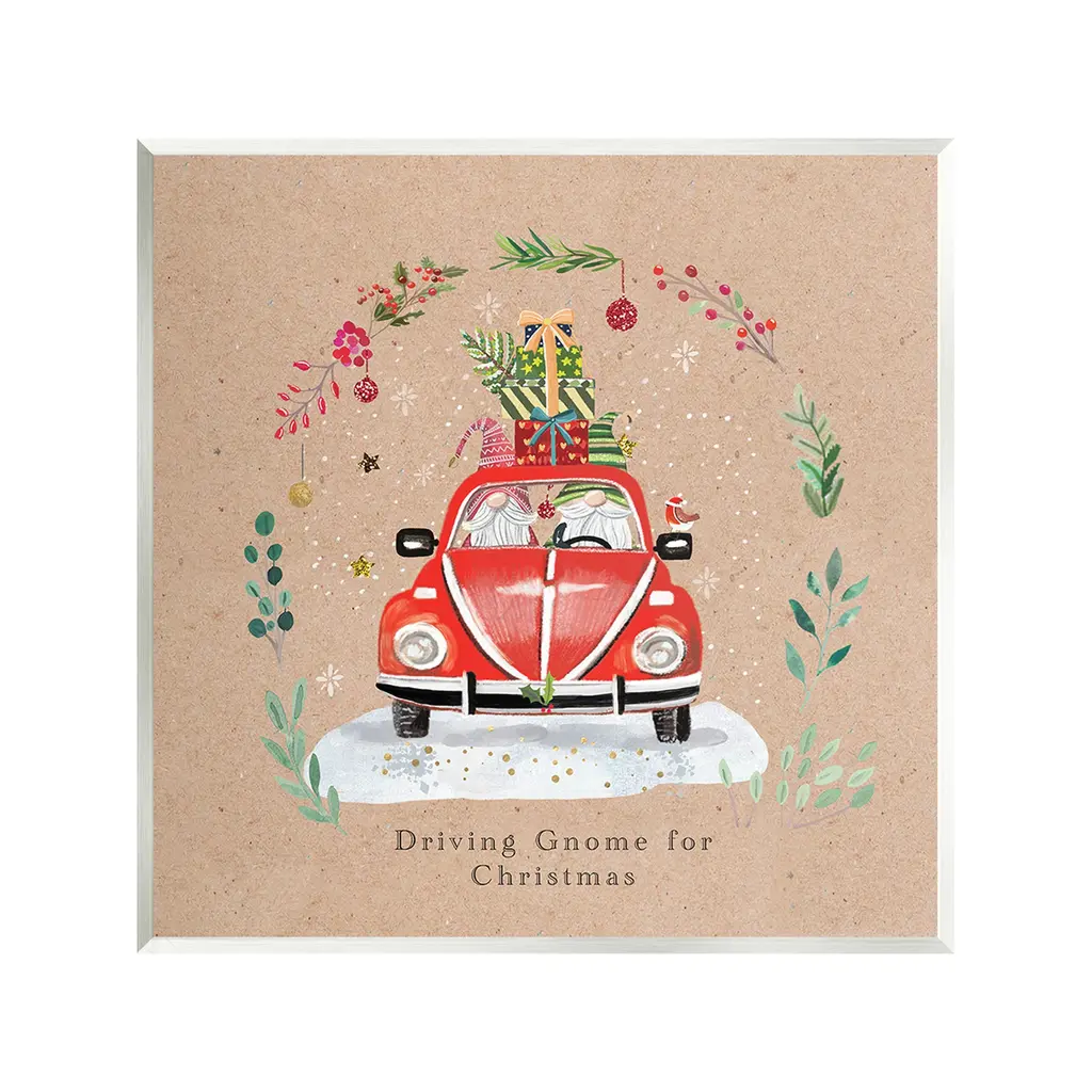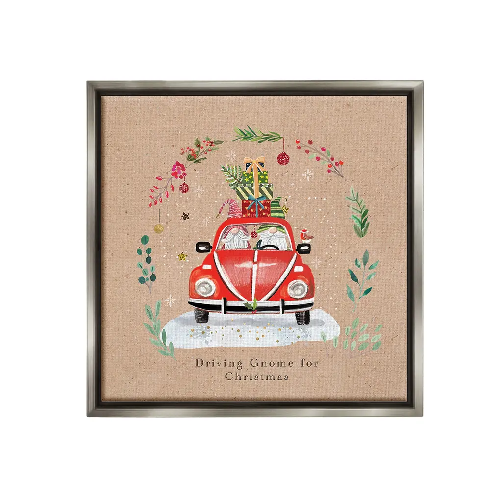 Add dimension to any room with our textured Framed Giclee Artwork. Our framed artwork is securely mounted into a 1.5-inch thick wood grain frame and ready to hang. Frames are available in three alluring styles: black, gray farmhouse and white. In addition, you should check out our oversized options if you want a statement piece. Stupell Wall Art is made in the USA.Features: Dimensions: 12 x 1.5 x 12 FramedFramed Giclee Product Sizes Include 12"x12", 17"x17", and 24"x24". Framed Giclee Products have a 1.5" Depth. Wall Art is Ready to Hang with Hardware Free Hanging. No installation required. For Easy Set Up Lean or Layer Artwork on Shelf or Against Wall.Our giclée prints are carefully mounted on a durable MDF backing, and then perfectly finished in a 1.5 inch thick woodgrain frame. Mounted frame colors include black, gray farmhouse and white. Made In USA.Artwork Relates To: Floral, Plant, Winter, Snow, Scene, Holly Berry, Botanical, Holiday, Christmas, Gnome, Car, Truck, Ornament, Driving Gnome For ChristmasDesign by Sally Darby
