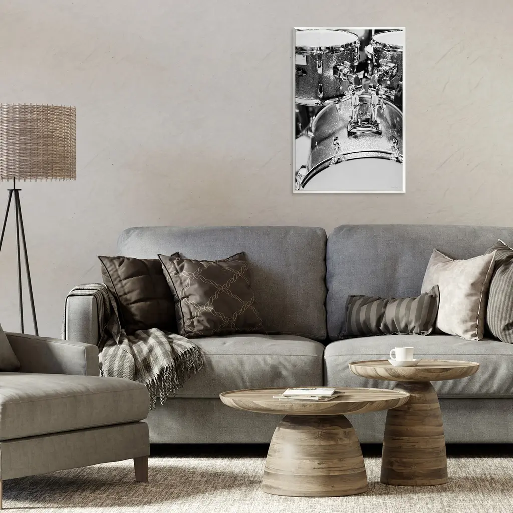 Stupell Drum Set Black & White Wall Plaque Art Design By Jennifer Rigsby - 13 X 19