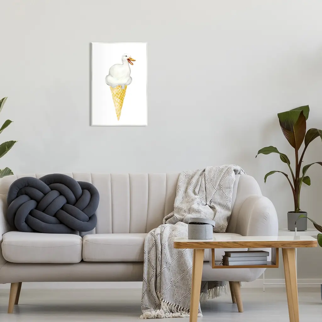 Our wall plaques start as high-quality lithograph prints mounted on durable 0.5-inch thick MDF wood. Each piece is hand finished and comes with a fresh layer of white foil on the sides to give it a crisp, clean look. Plaques arrive ready to hang without installation and come with removable plastic corners to keep them from damage in transit. Stupell Industries Wall Art is made in the USA.Features: Dimensions: 10 x 0.5 x 15 InchesWall Plaque Sizes Include Standard: 10 x 0.5 x 15 Oversized: 13 x 0.5 x 19Wall Art is Ready to Hang with Hardware Free Hanging. No installation required. For Easy Set Up Lean or Layer Artwork on Shelf or Against Wall.All of our wall plaques start off as high quality lithograph prints that are then mounted on durable 0.5 inch thick MDF wood. Each piece is hand finished and comes with a fresh layer of foil on the sides to give it a crisp clean look. Made In USA.Artwork Relates To: Dessert, Food, Ice Cream, Animal, Bird, Cone, DuckDesign by Ziwei Li