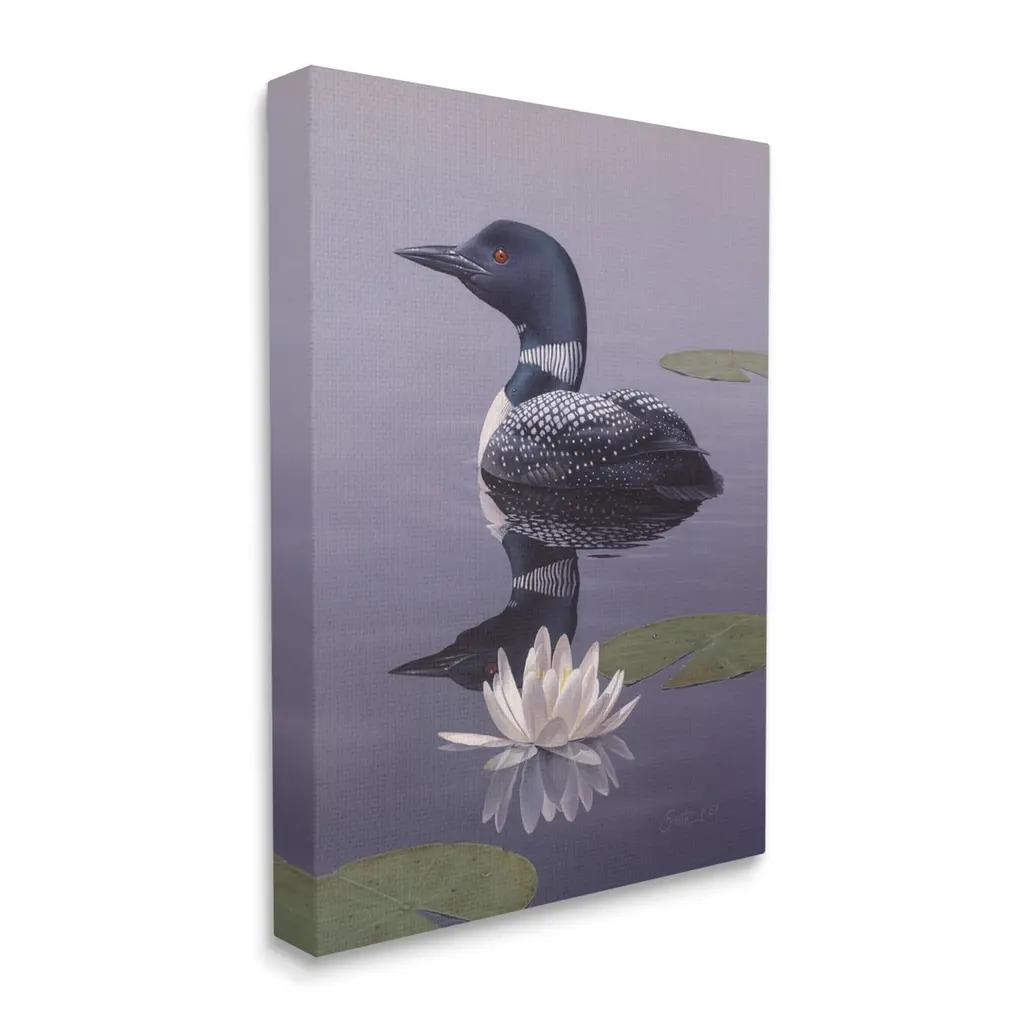 We create our stretched canvas to the highest standards. Using only the highest quality inks and canvas on Mimaki printers, we hand-cut and stretch each piece over a 1.5-inch thick wooden frame for hanging. As a result, the art comes ready to hang on the sturdy ledge with no installation required. Stupell Wall Art is made in the USA.Features: Dimensions: 16 x 1.5 x 20 InchesStretched Canvas Sizes Include Standard: 16 x 1.5 x 20 Large: 20 x 1.5 x 30 X-Large: 30 x 1.5 x 40 Oversized: 36 x 1.5 x 48Wall Art is Ready to Hang - No Installation or Hardware Needed. For Easy Set Up Lean or Layer Artwork on Shelf or Against Wall.Our stretched canvas is created with the highest standards. We use only the highest quality inks and canvas on our in house Mimaki printers, and then hand cut and stretch each piece over a 1.5 inch thick wooden frame for hanging. Made In USA.Artwork Relates To: Animal, Bird, Flower, Plant, Water, Lily, Pond Lily, Nature, Goose, Cormorant, PondDesign by Daniel Smith