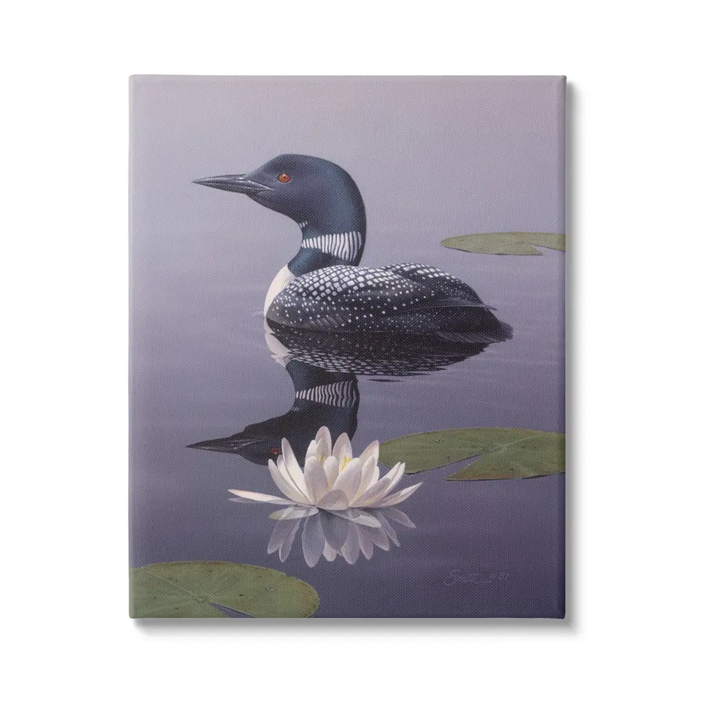 We create our stretched canvas to the highest standards. Using only the highest quality inks and canvas on Mimaki printers, we hand-cut and stretch each piece over a 1.5-inch thick wooden frame for hanging. As a result, the art comes ready to hang on the sturdy ledge with no installation required. Stupell Wall Art is made in the USA.Features: Dimensions: 16 x 1.5 x 20 InchesStretched Canvas Sizes Include Standard: 16 x 1.5 x 20 Large: 20 x 1.5 x 30 X-Large: 30 x 1.5 x 40 Oversized: 36 x 1.5 x 48Wall Art is Ready to Hang - No Installation or Hardware Needed. For Easy Set Up Lean or Layer Artwork on Shelf or Against Wall.Our stretched canvas is created with the highest standards. We use only the highest quality inks and canvas on our in house Mimaki printers, and then hand cut and stretch each piece over a 1.5 inch thick wooden frame for hanging. Made In USA.Artwork Relates To: Animal, Bird, Flower, Plant, Water, Lily, Pond Lily, Nature, Goose, Cormorant, PondDesign by Daniel Smith