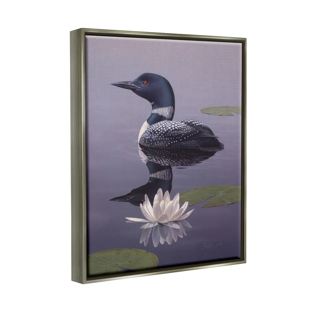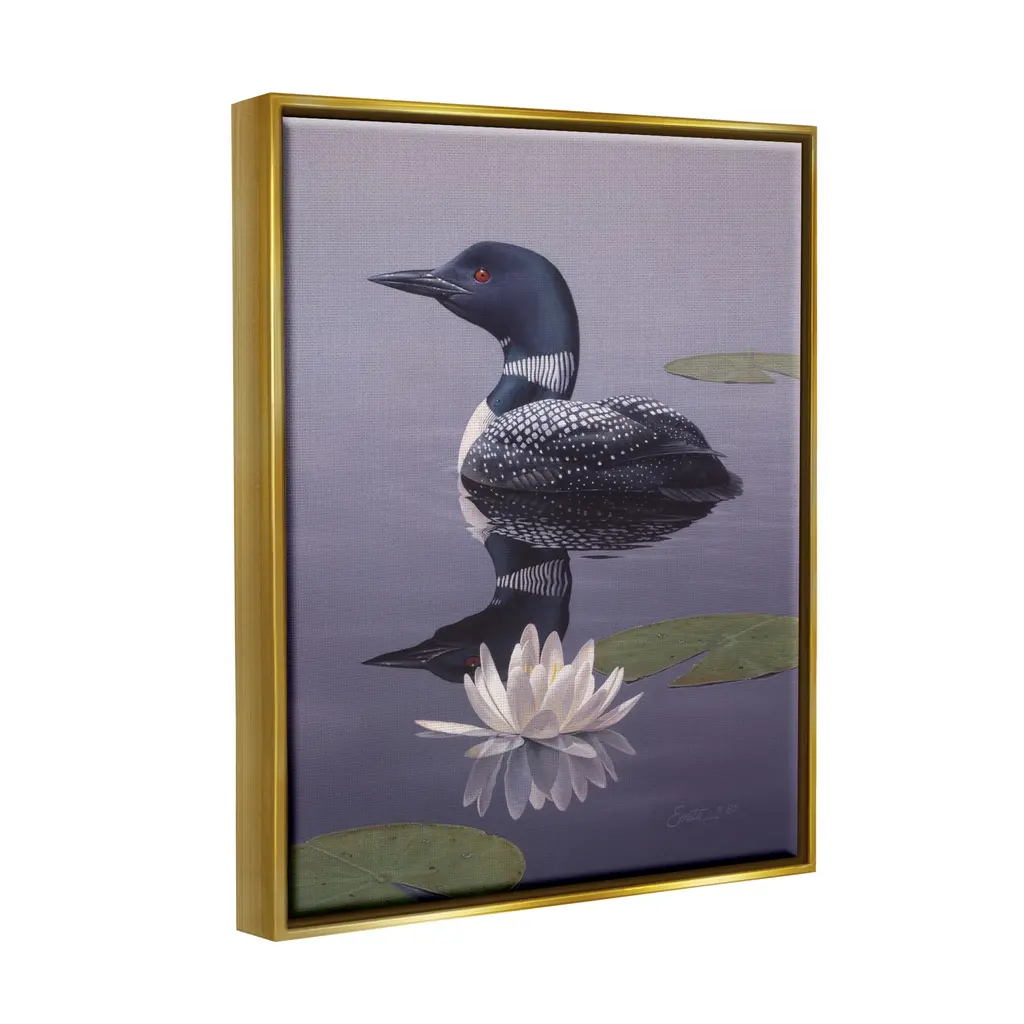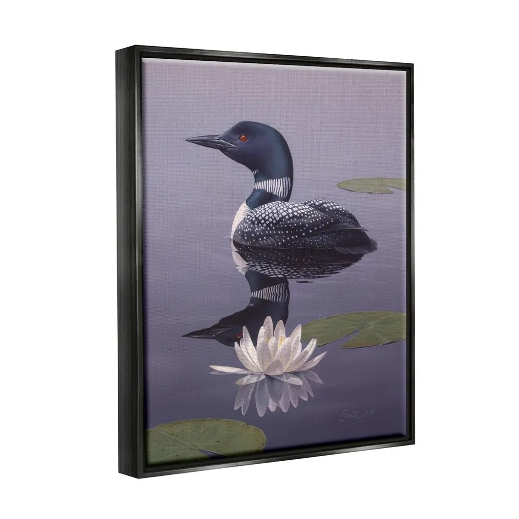 Elevate your home or office to the next level with Stupell Framed Floating Canvas Wall Art. Our premium hand-stretched canvas is mounted securely into a sturdy lightweight frame. The museum-style gap between the wrapped canvas and the box frame gives the illusion of floating artwork. Stupell Wall Art is made in the USA.Features: Dimensions: 17 x 1.7 x 21 Frame, 16 x 1.5 x 20 Canvas ArtFloating Frame Sizes Include Standard: 17 x 1.7 x 21 Oversized: 25 x 1.7 x 31Wall Art is Ready to Hang - No Installation or Hardware Needed. For Easy Set Up Lean or Layer Artwork on Shelf or Against Wall.Our elevated 1.7" Thick Floating Frame is the perfect complement to our canvas style Wall Art. We use only the highest quality inks in house with industry leading printing solutions. Canvas is hand stretched over a durable wood foundation and then mounted securly into a Modern Box Frame. Made in the USA.Artwork Relates To: Animal, Bird, Flower, Plant, Water, Lily, Pond Lily, Nature, Goose, Cormorant, PondDesign by Daniel Smith