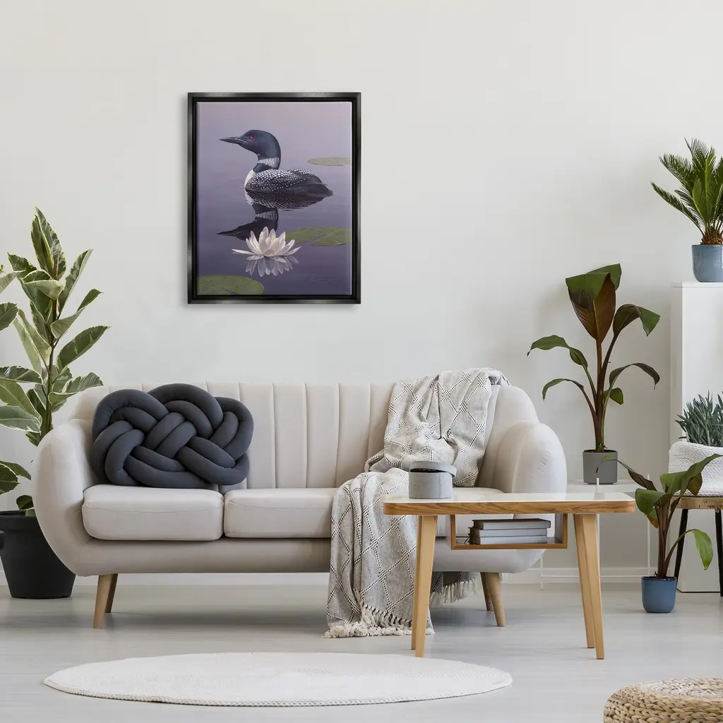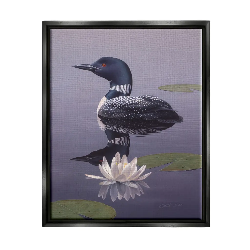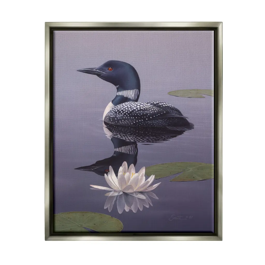 Elevate your home or office to the next level with Stupell Framed Floating Canvas Wall Art. Our premium hand-stretched canvas is mounted securely into a sturdy lightweight frame. The museum-style gap between the wrapped canvas and the box frame gives the illusion of floating artwork. Stupell Wall Art is made in the USA.Features: Dimensions: 17 x 1.7 x 21 Frame, 16 x 1.5 x 20 Canvas ArtFloating Frame Sizes Include Standard: 17 x 1.7 x 21 Oversized: 25 x 1.7 x 31Wall Art is Ready to Hang - No Installation or Hardware Needed. For Easy Set Up Lean or Layer Artwork on Shelf or Against Wall.Our elevated 1.7" Thick Floating Frame is the perfect complement to our canvas style Wall Art. We use only the highest quality inks in house with industry leading printing solutions. Canvas is hand stretched over a durable wood foundation and then mounted securly into a Modern Box Frame. Made in the USA.Artwork Relates To: Animal, Bird, Flower, Plant, Water, Lily, Pond Lily, Nature, Goose, Cormorant, PondDesign by Daniel Smith