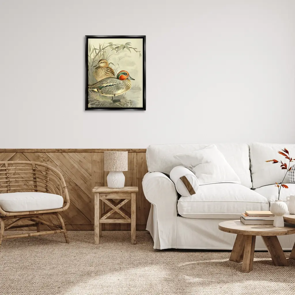 Elevate your home or office to the next level with Stupell Framed Floating Canvas Wall Art. Our premium hand-stretched canvas is mounted securely into a sturdy lightweight frame. The museum-style gap between the wrapped canvas and the box frame gives the illusion of floating artwork. Stupell Wall Art is made in the USA.Features: Dimensions: 17 x 1.7 x 21 Frame, 16 x 1.5 x 20 Canvas ArtFloating Frame Canvas Products are available in sizes 17"x21" and 25"x31". All Floating Frame Canvas Products have a 1.7" Depth.Wall Art is Ready to Hang with Hardware Free Hanging. No Installation required. For Easy Set Up Lean or Layer Artwork on Shelf or Against Wall. Artwork is Permently Fixed into the Frame.Our elevated 1.7" Thick Floating Frame is the perfect complement to our canvas style Wall Art. We use only the highest quality inks in house with industry leading printing solutions. Canvas is hand stretched over a durable wood foundation and then mounted securly into a Modern Box Frame. Made in the USA.Artwork Relates To: Animal, Bird, Duck, Mallard, Beak, Lake, Pond, Landscape, Nature, TraditionalDesign by Gail Fraser