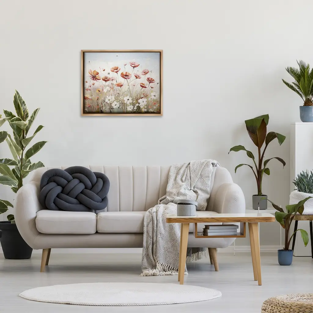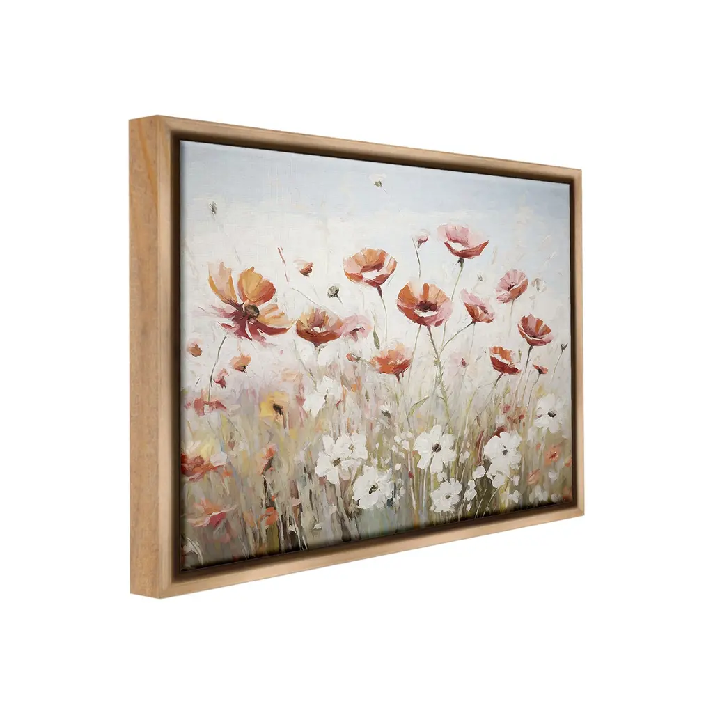 Elevate your home or office to the next level with Stupell Framed Floating Canvas Wall Art. Our premium hand-stretched canvas is mounted securely into a sturdy lightweight frame. The museum-style gap between the wrapped canvas and the box frame gives the illusion of floating artwork. Stupell Wall Art is made in the USA.Features: Dimensions: 21 x 1.7 x 17 Frame, 20 x 1.5 x 16 Canvas ArtFloating Frame Canvas Products are available in sizes 21"x17" and 31"x25". All Floating Frame Canvas Products have a 1.7" Depth.Wall Art is Ready to Hang with Hardware Free Hanging. No Installation required. For Easy Set Up Lean or Layer Artwork on Shelf or Against Wall. Artwork is Permently Fixed into the Frame.Our elevated 1.7" Thick Floating Frame is the perfect complement to our canvas style Wall Art. We use only the highest quality inks in house with industry leading printing solutions. Canvas is hand stretched over a durable wood foundation and then mounted securly into a Modern Box Frame. Made in the USA.Artwork Relates To: Plant, Flower, Floral, Country, Farmhouse, Landscape, Meadow, PoppyDesign by Ramona Murdock
