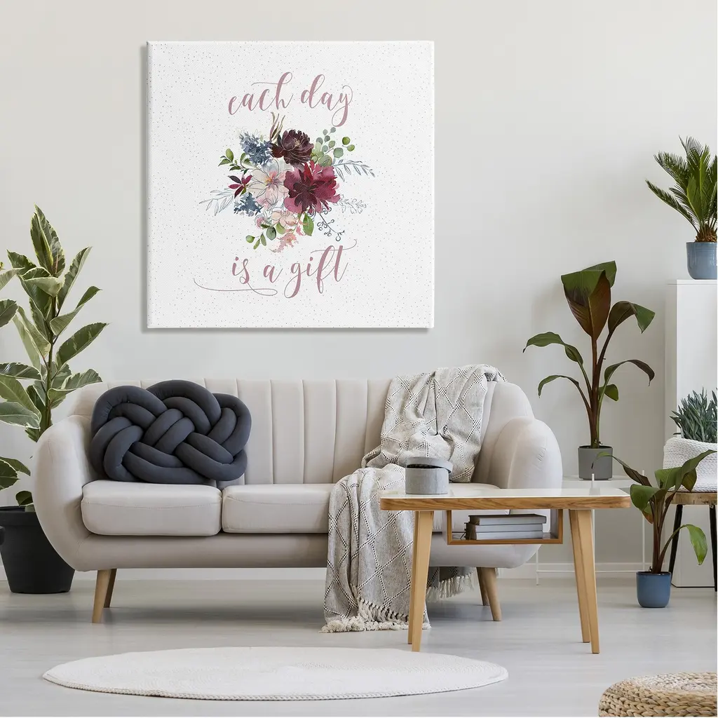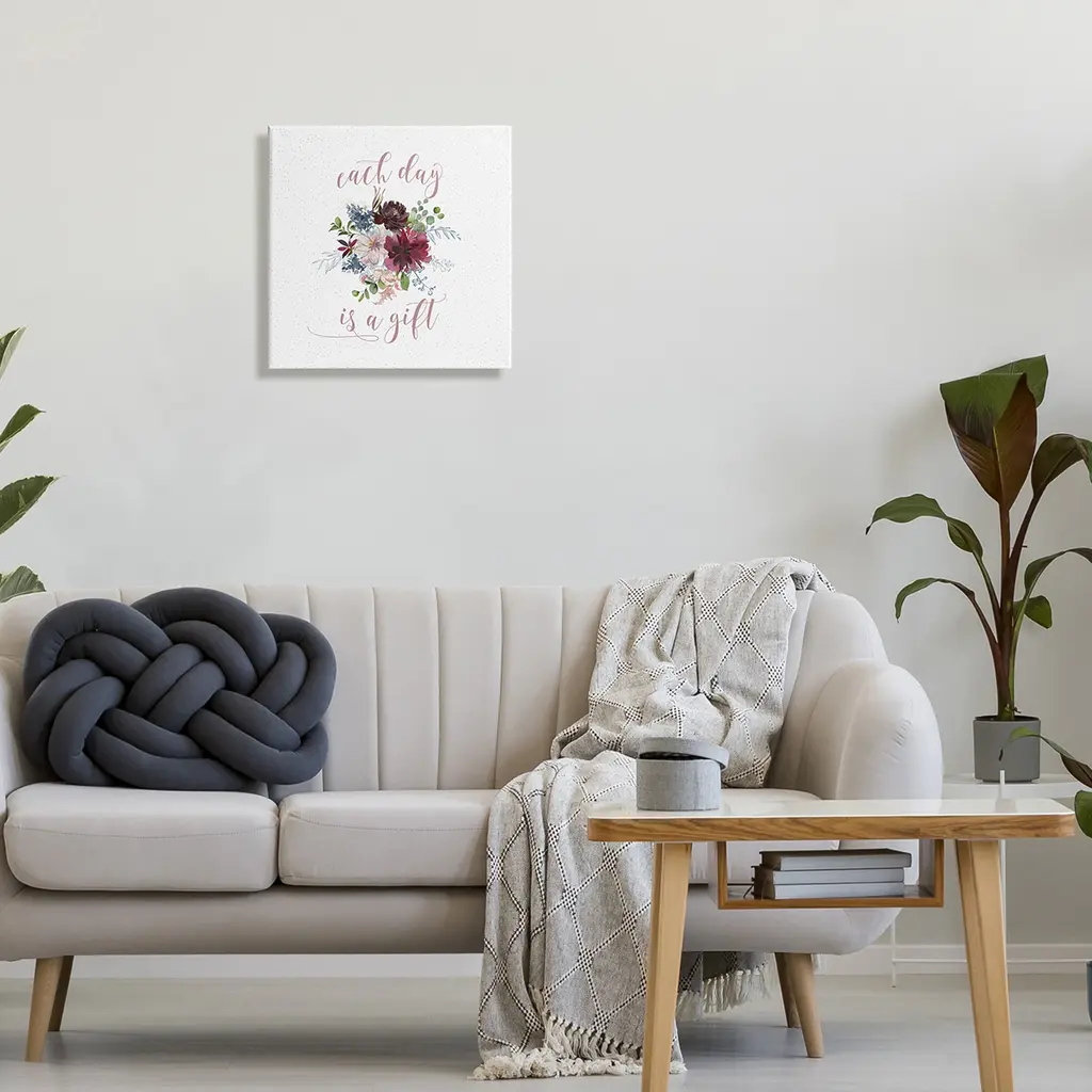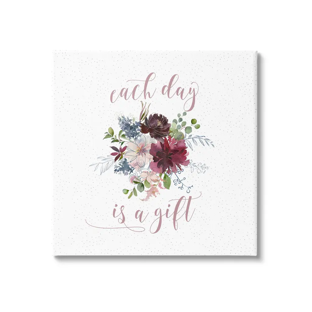 Stupell Each Day Gift Calligraphy Quote Minimal Floral Pattern Canvas Wall Art - 24 X 24