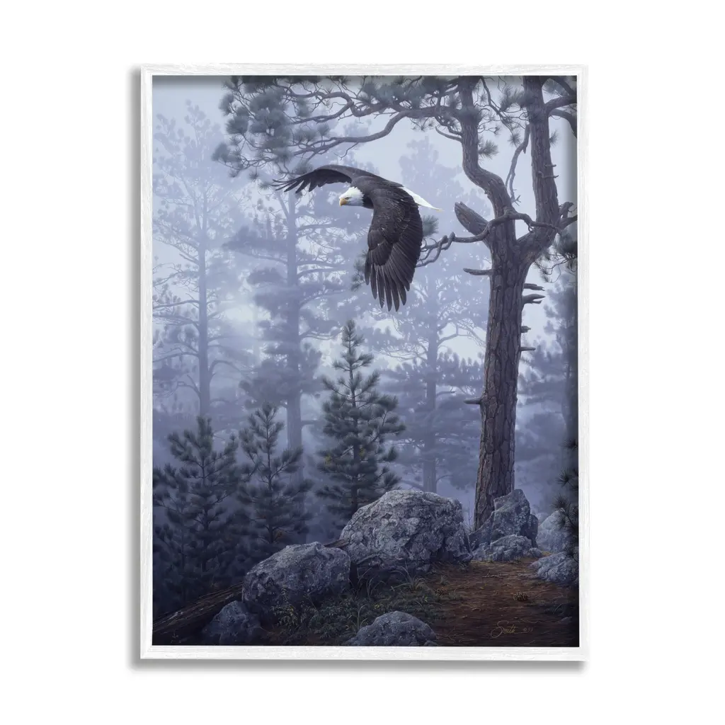 Elevate your home or office to the next level with Stupell Framed Floating Canvas Wall Art. Our premium hand-stretched canvas is mounted securely into a sturdy lightweight frame. The museum-style gap between the wrapped canvas and the box frame gives the illusion of floating artwork. Stupell Wall Art is made in the USA.Features: Dimensions: 17 x 1.7 x 21 Frame, 16 x 1.5 x 20 Canvas ArtFloating Frame Sizes Include Standard: 17 x 1.7 x 21 Oversized: 25 x 1.7 x 31Wall Art is Ready to Hang - No Installation or Hardware Needed. For Easy Set Up Lean or Layer Artwork on Shelf or Against Wall.Our elevated 1.7" Thick Floating Frame is the perfect complement to our canvas style Wall Art. We use only the highest quality inks in house with industry leading printing solutions. Canvas is hand stretched over a durable wood foundation and then mounted securly into a Modern Box Frame. Made in the USA.Artwork Relates To: Animal, Bird, Eagle, Plant, Bald Eagle, Tree, Land, Nature, Woodland, FlyingDesign by Daniel Smith