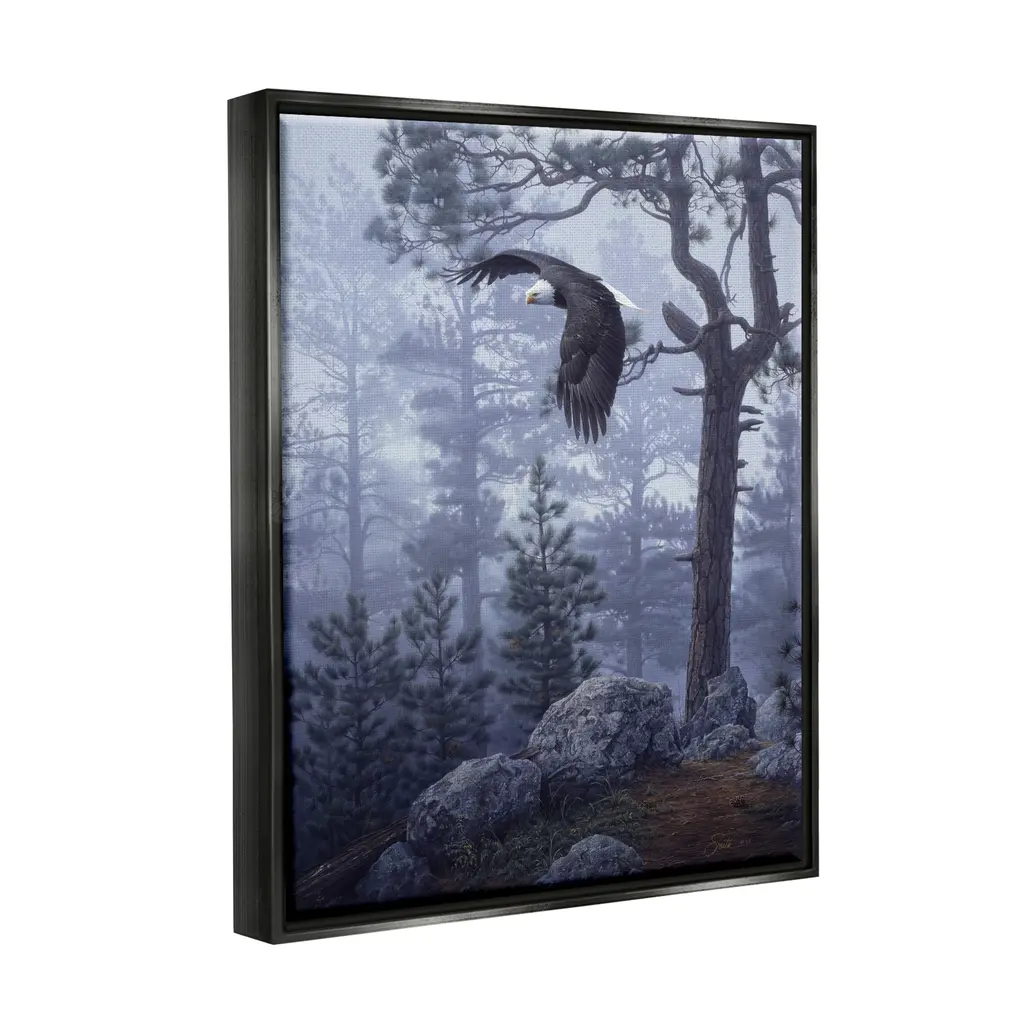 Stupell Eagle Flying Woodland Scene Framed Floater Canvas Wall Art By Daniel Smith - 24 X 30 - Black