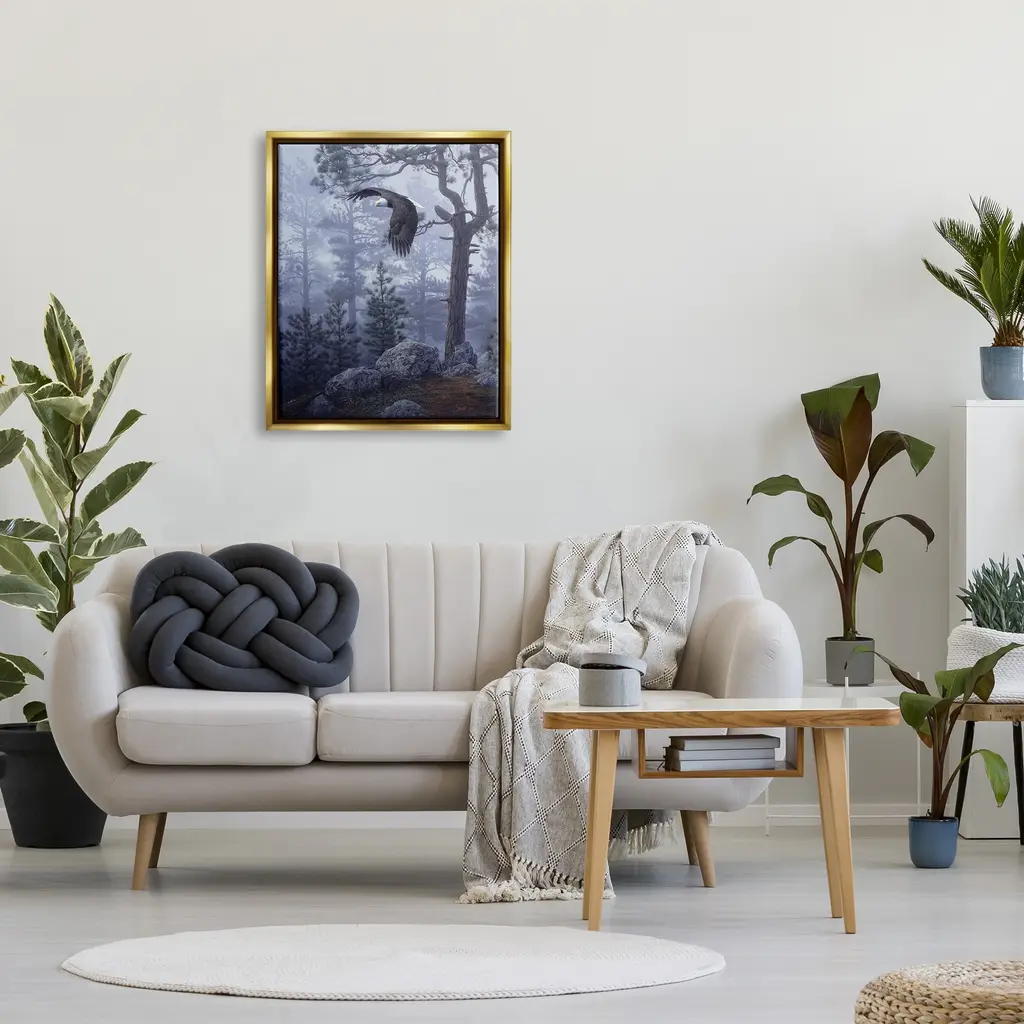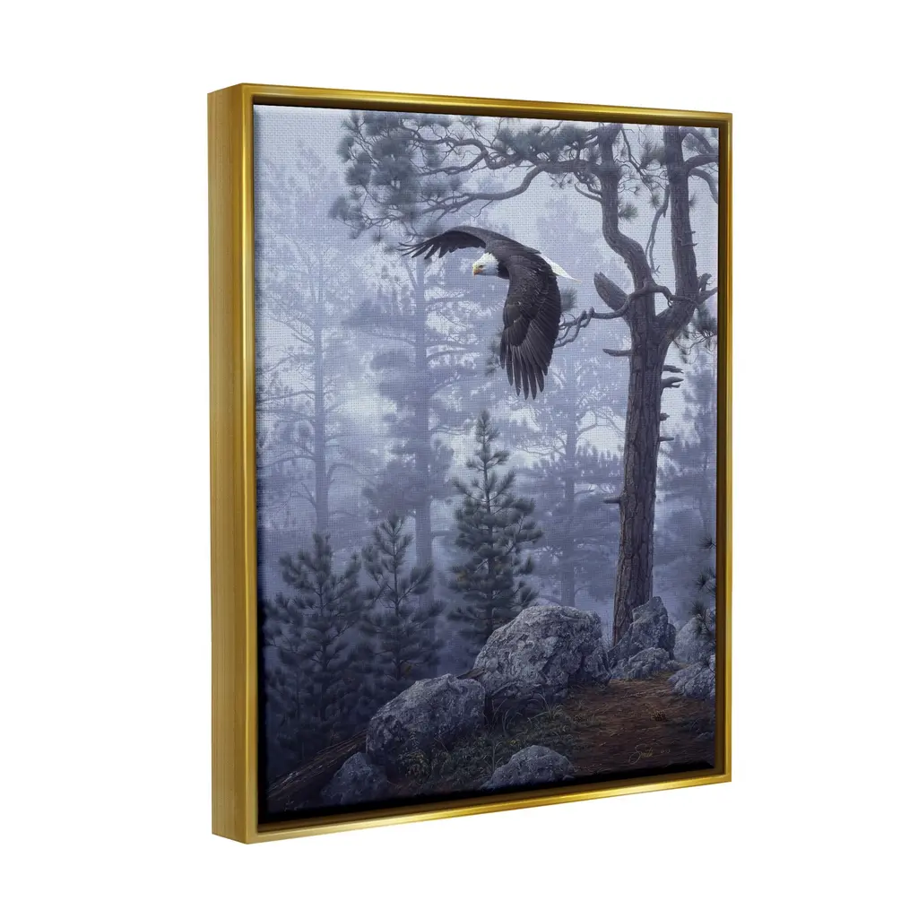 Elevate your home or office to the next level with Stupell Framed Floating Canvas Wall Art. Our premium hand-stretched canvas is mounted securely into a sturdy lightweight frame. The museum-style gap between the wrapped canvas and the box frame gives the illusion of floating artwork. Stupell Wall Art is made in the USA.Features: Dimensions: 17 x 1.7 x 21 Frame, 16 x 1.5 x 20 Canvas ArtFloating Frame Sizes Include Standard: 17 x 1.7 x 21 Oversized: 25 x 1.7 x 31Wall Art is Ready to Hang - No Installation or Hardware Needed. For Easy Set Up Lean or Layer Artwork on Shelf or Against Wall.Our elevated 1.7" Thick Floating Frame is the perfect complement to our canvas style Wall Art. We use only the highest quality inks in house with industry leading printing solutions. Canvas is hand stretched over a durable wood foundation and then mounted securly into a Modern Box Frame. Made in the USA.Artwork Relates To: Animal, Bird, Eagle, Plant, Bald Eagle, Tree, Land, Nature, Woodland, FlyingDesign by Daniel Smith