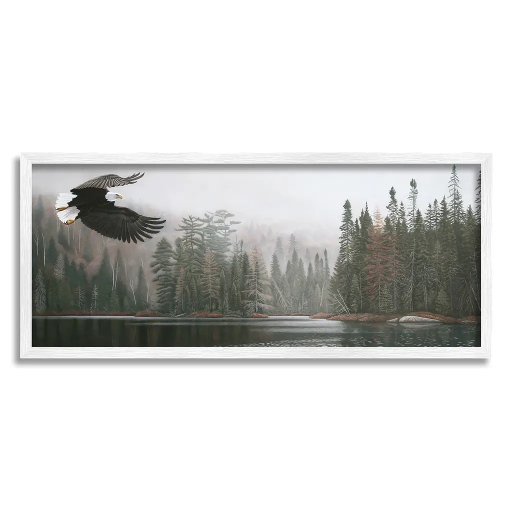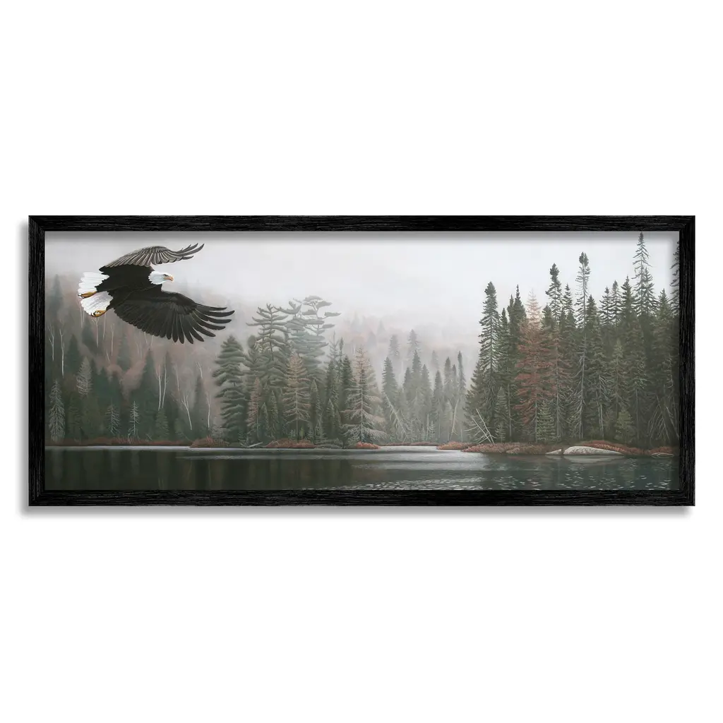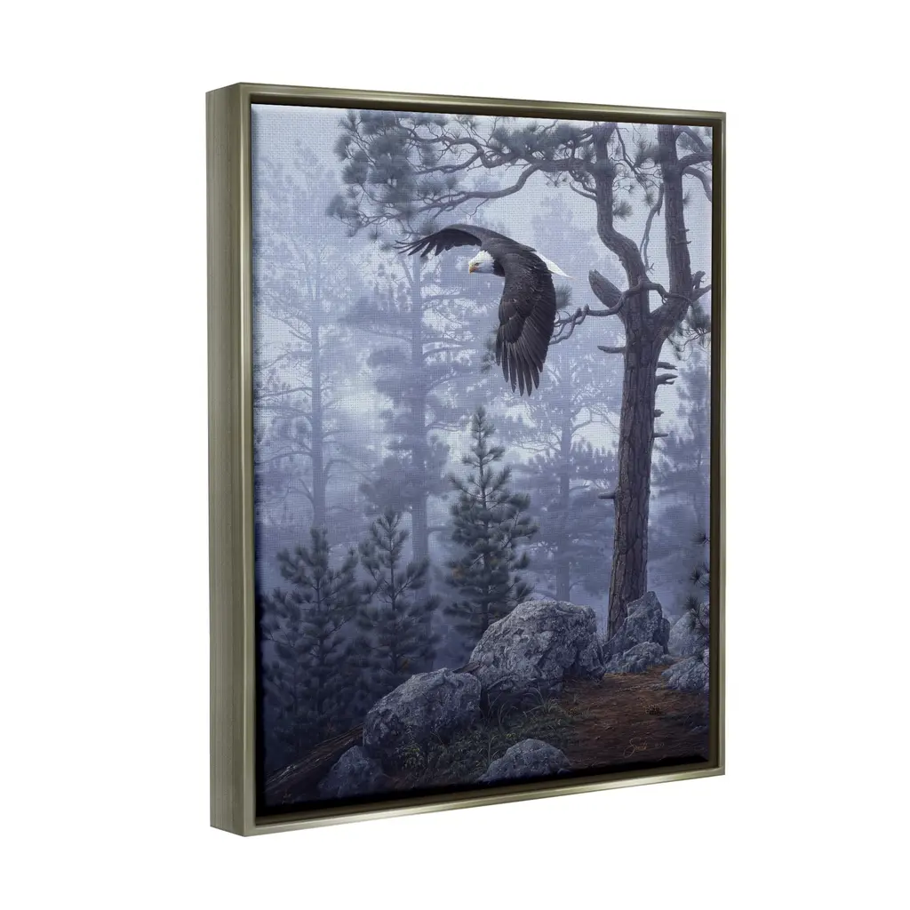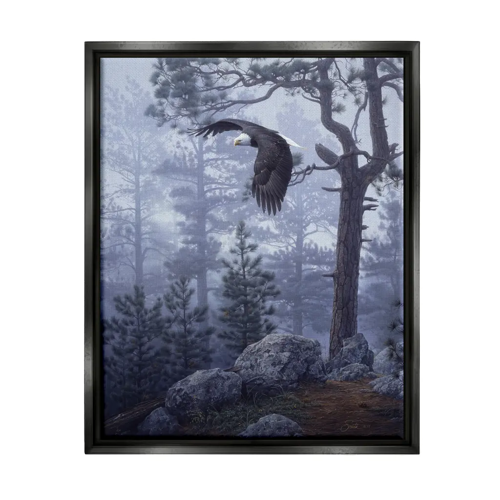 Elevate your home or office to the next level with Stupell Framed Floating Canvas Wall Art. Our premium hand-stretched canvas is mounted securely into a sturdy lightweight frame. The museum-style gap between the wrapped canvas and the box frame gives the illusion of floating artwork. Stupell Wall Art is made in the USA.Features: Dimensions: 17 x 1.7 x 21 Frame, 16 x 1.5 x 20 Canvas ArtFloating Frame Sizes Include Standard: 17 x 1.7 x 21 Oversized: 25 x 1.7 x 31Wall Art is Ready to Hang - No Installation or Hardware Needed. For Easy Set Up Lean or Layer Artwork on Shelf or Against Wall.Our elevated 1.7" Thick Floating Frame is the perfect complement to our canvas style Wall Art. We use only the highest quality inks in house with industry leading printing solutions. Canvas is hand stretched over a durable wood foundation and then mounted securly into a Modern Box Frame. Made in the USA.Artwork Relates To: Animal, Bird, Eagle, Plant, Bald Eagle, Tree, Land, Nature, Woodland, FlyingDesign by Daniel Smith