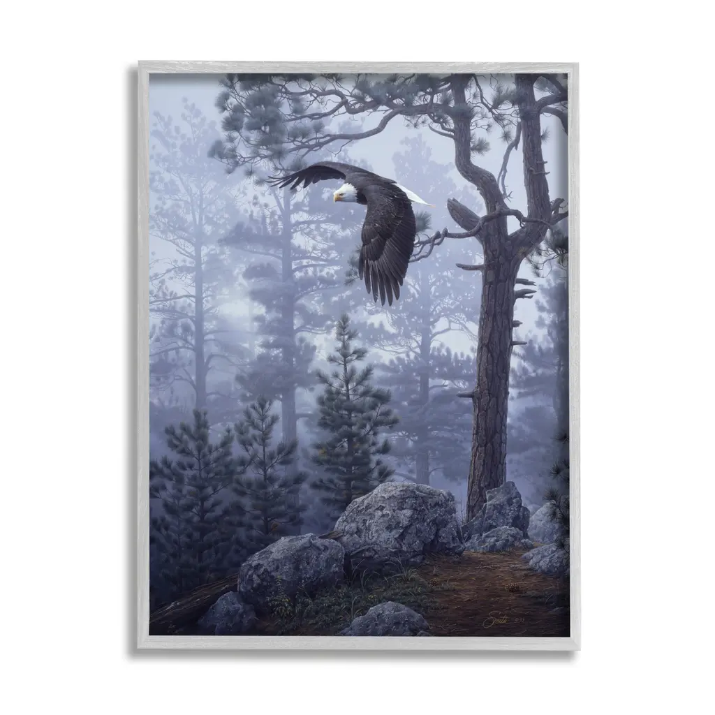 Stupell Eagle Flying Woodland Scene Framed Floater Canvas Wall Art By Daniel Smith - 24 X 30 - Grey